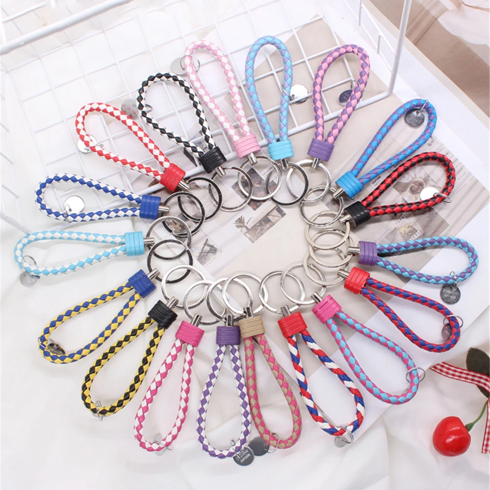 13 cm geflochtener PU-Leder Schlüsselanhänger – Farbiger Keyring für Damen & Herren, modisches Auto- & Taschen-Accessoire mit Metallring