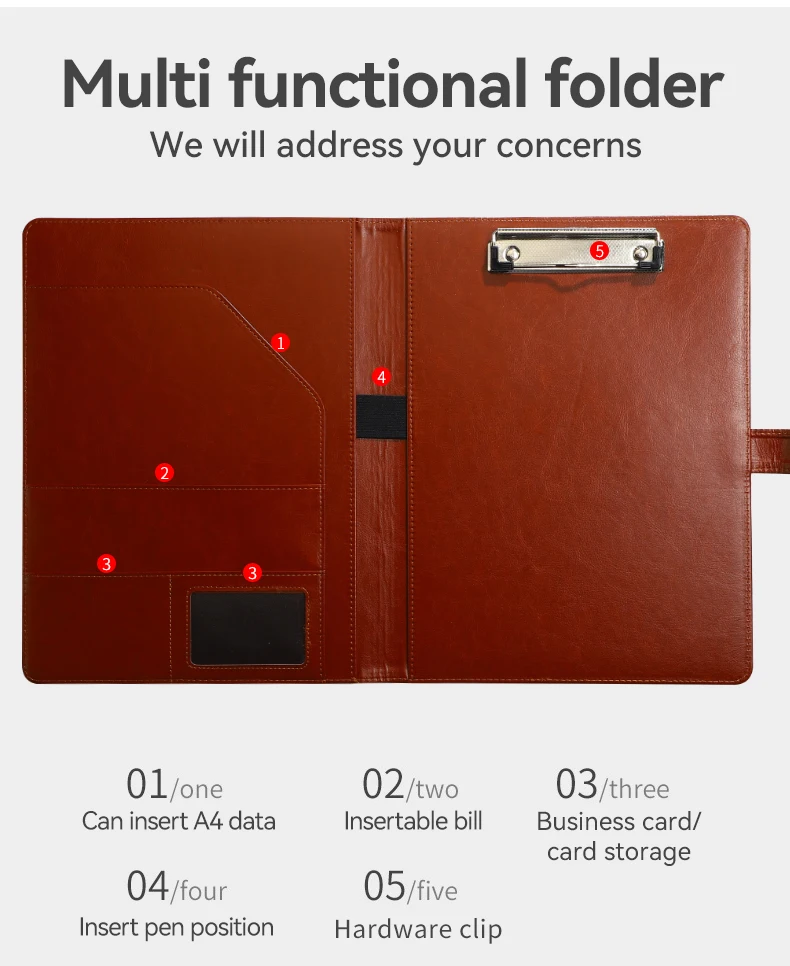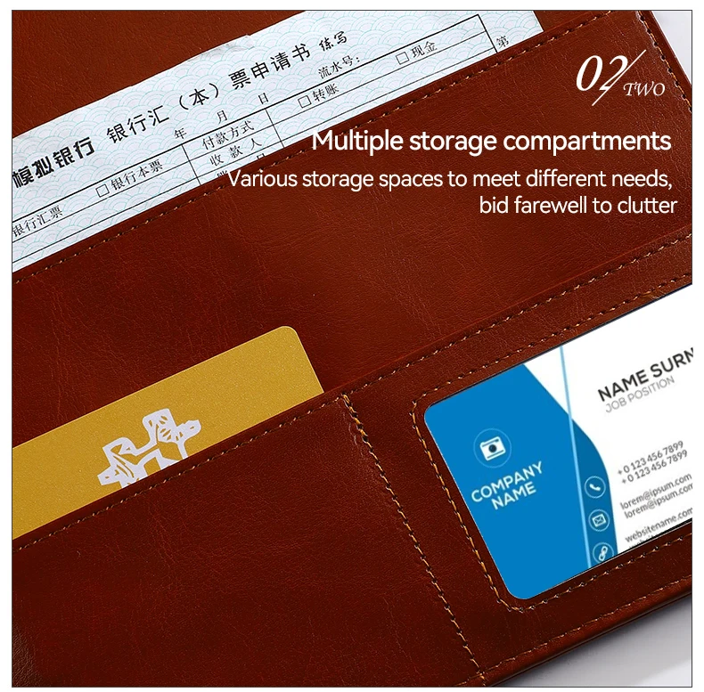 Tarjeta de negocios A4 PU con hojas estructuradas
