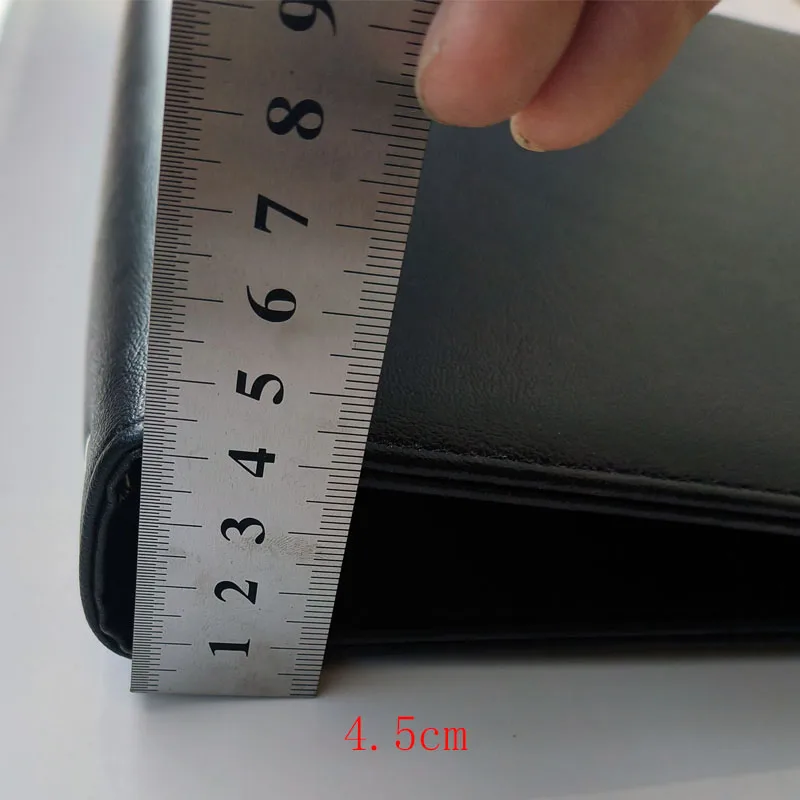 El ordenador de cuero A4 PU con mecanismo de 4 anillos es la ubicación ideal para todos los documentos, seguridad, organización y estilo. Mit seinem schlichten, professional Design eignet sich dieser Ordner perfekt für den Büroalltag, Meetings, Schule, Studium oder Geschäftsreisen . Die hochwertige Lederoptik verleiht Ihren Unterlagen una presentación elegante y estructurada.