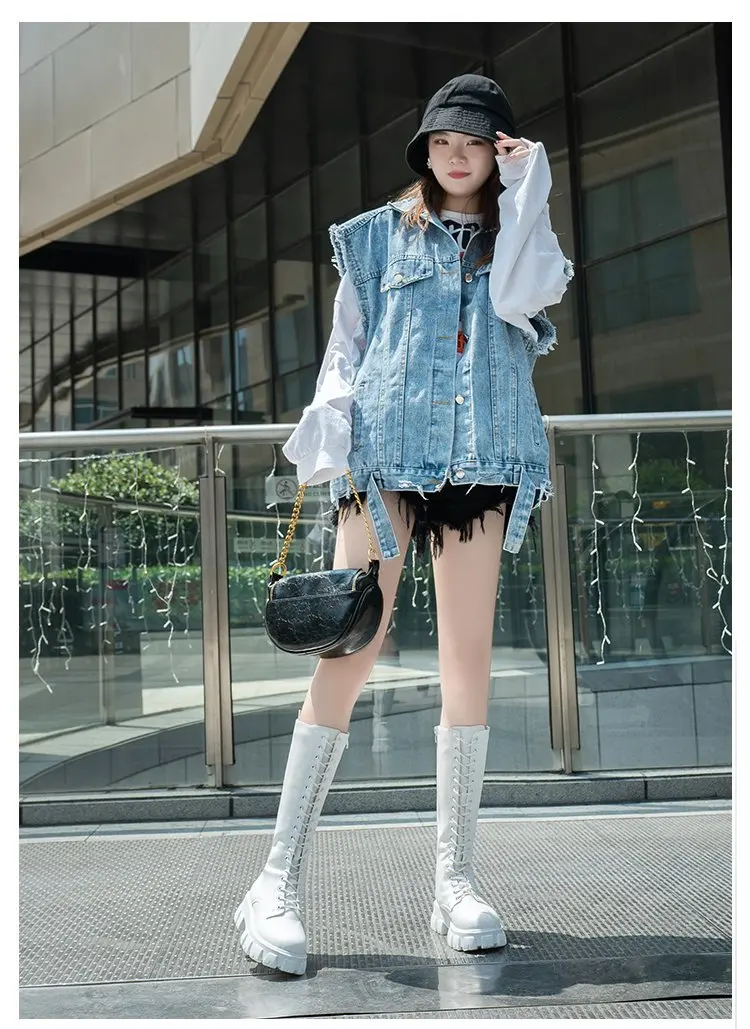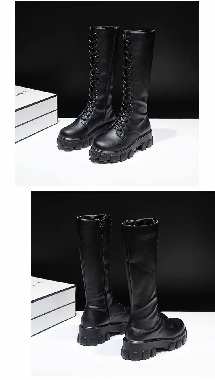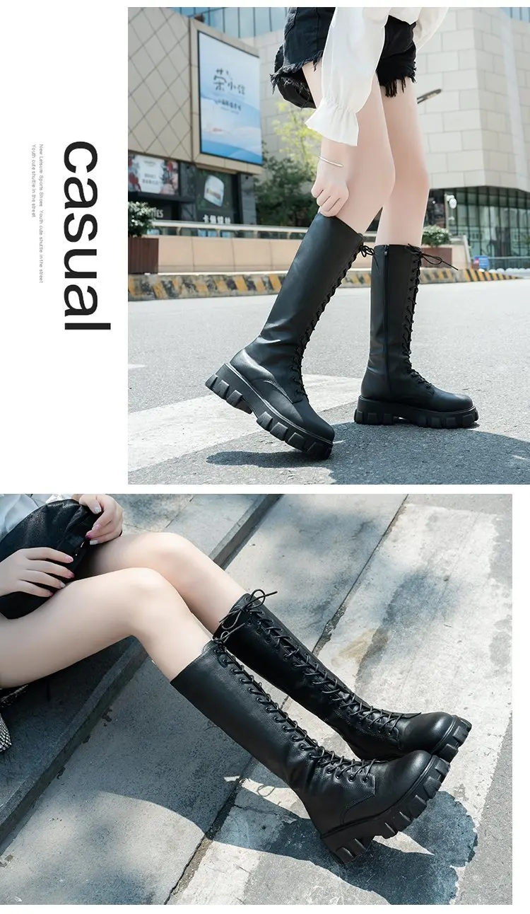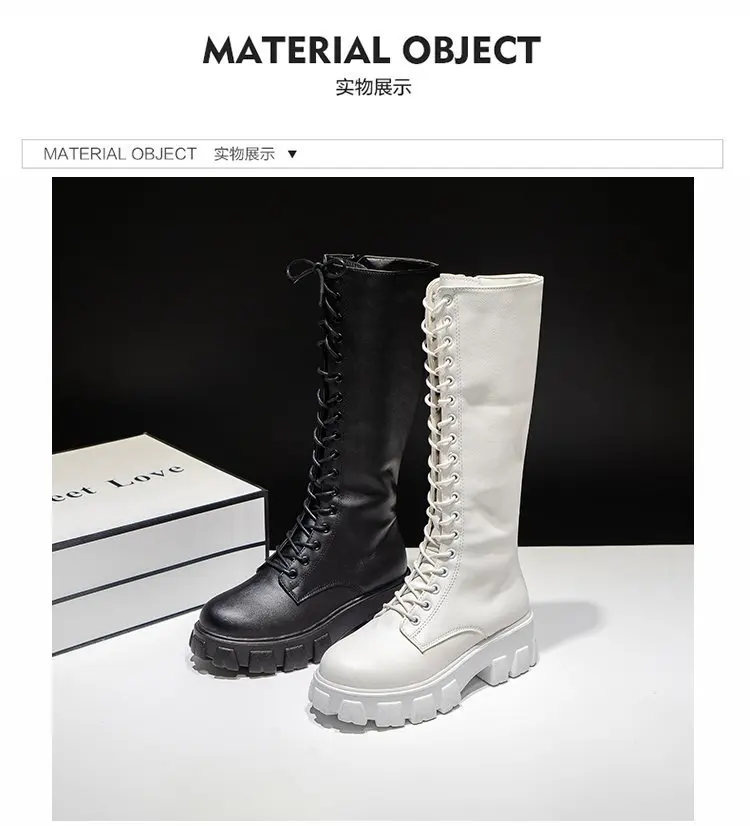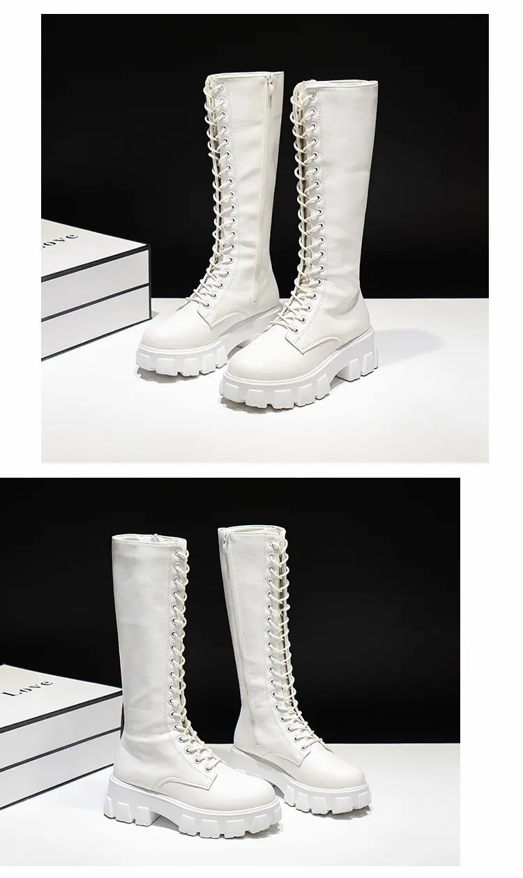 Aphixta Damen Langschaftstiefel Weiß – Modische High Heel Schnürstiefel aus PU-Leder mit Plateau & spitzer Zehenform