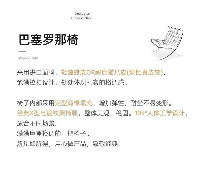 El diseñador más elegante Einzelsessel im Barcelona-Stil