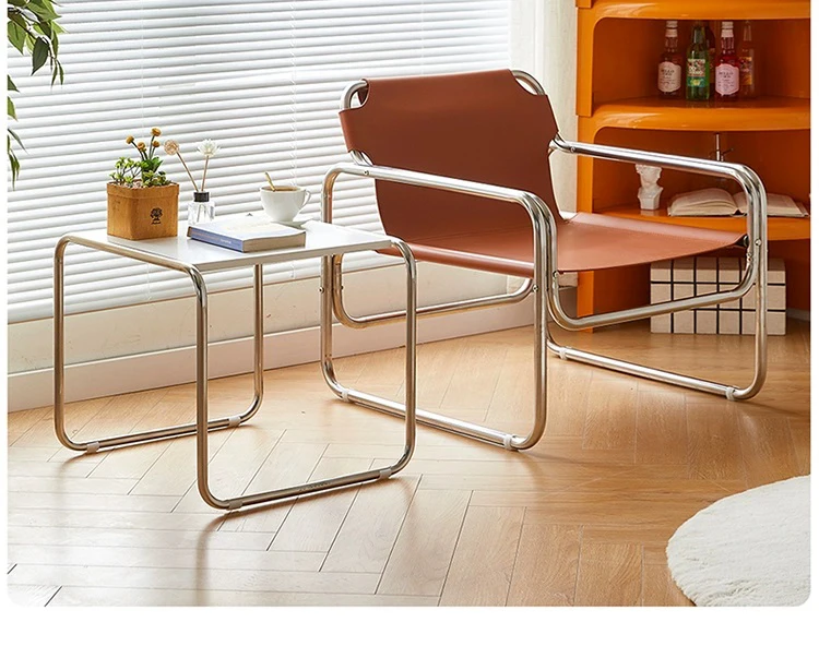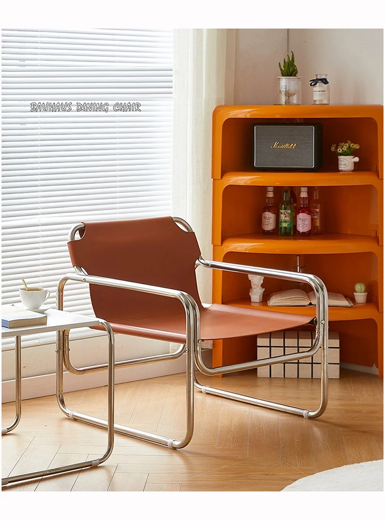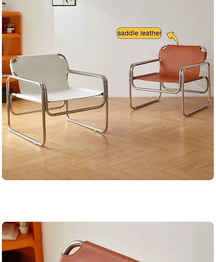 Sillón Bauhaus aus Sattelleder & Edelstahl – Diseñador clásico-Lehnstuhl im minimalistaischen Stil für Wohnzimmer