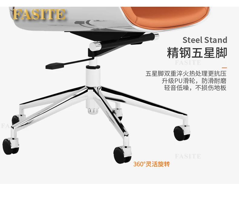 Der hochwertige Lederbezug überzeugt durch eine angenehme Haptik, elegante Optik und pflegeleichte Eigenschaften. Das Light-Luxury Design mit klaren Linien verleiht dem Stuhl eine moderne, selbstbewusste Präsenz und fügt sich harmonisch in stilvolle Büros und Arbeitszimmer ein.