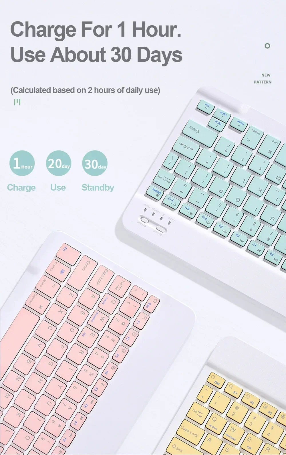 Este colorido teclado Bluetooth Candy se puede usar en el iPad en un teléfono móvil. Die Kombination aus stylischer Lederhülle , magnetischem Stand y kabelloser Bluetooth Tastatur bietet maximalen Comfort für Schreiben, Lernen und Arbeiten – ideal für Schule, Studium, Büro y unterwegs. Das moderne, farbenfrohe Design setzt dabei einen frischen Akzent und hebt sich bewusst vom klassischen Tablet-Zubehör ab.
