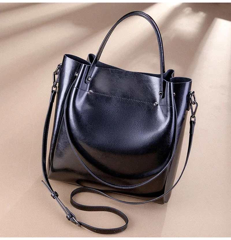 Cowhide Damen Tote Bag aus echtem Leder – Luxuriöse Vintage Designer Schultertasche mit großem Fassungsvermögen