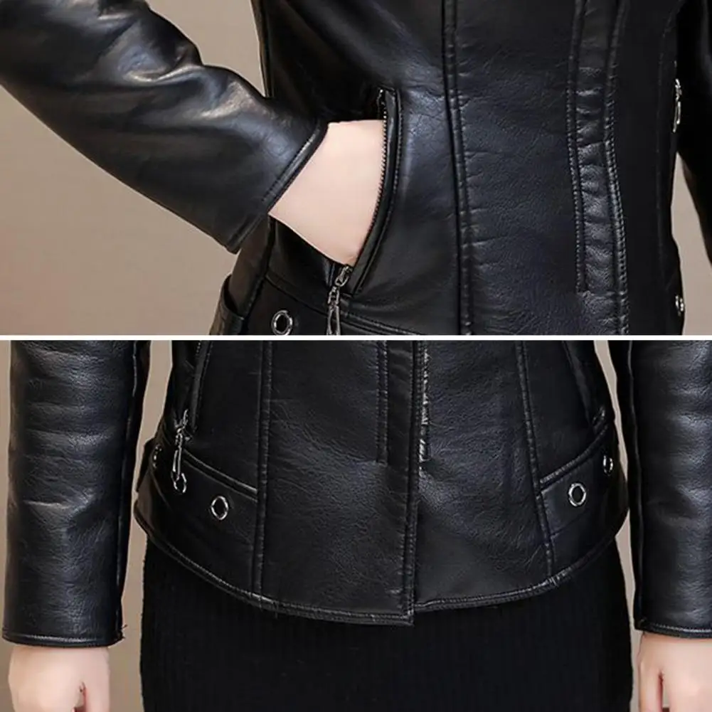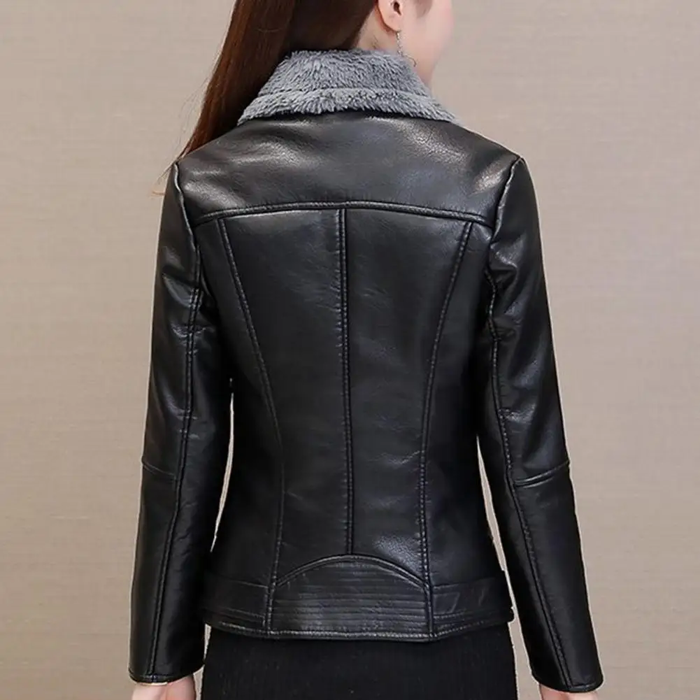 Damen Faux Lederjacke mit Plüschkragen – Slim Fit Kurzjacke aus PU Leder, chaqueta de invierno cálida en estilo casual