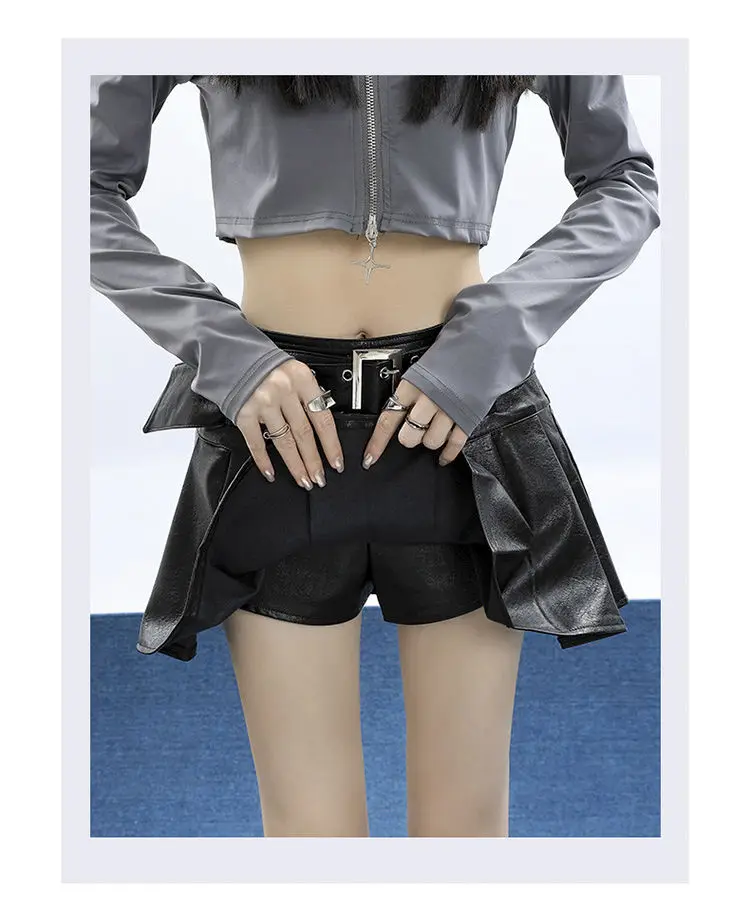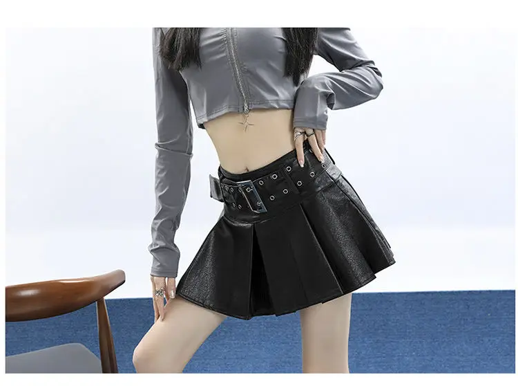 Damen PU Leder Minirock Schwarz – Plissierter A-Linien Rock im Punk- & Y2K-Style, Vintage Gothic Streetwear Minirock für Frühling & Sommer