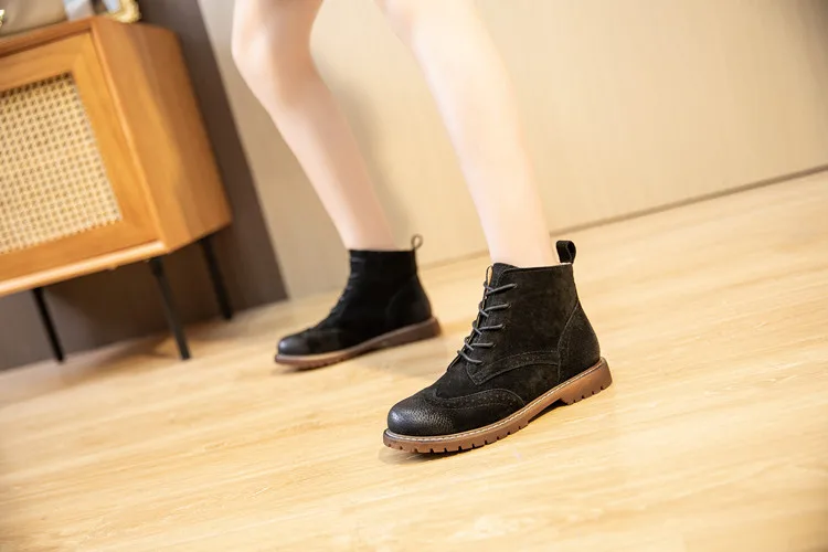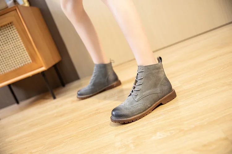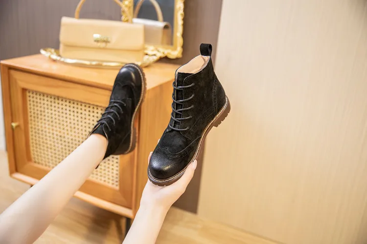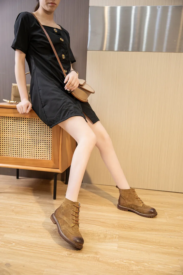 Damen Stiefeletten aus echtem Leder & Wildleder – Britische Retro Ankle Boots mit Schnürung, Fellfutter & niedrigem Blockabsatz (Herbst/Invierno 2025)