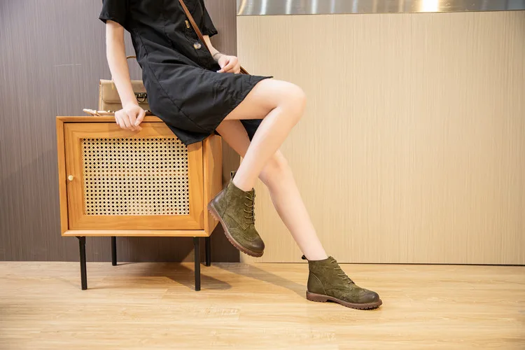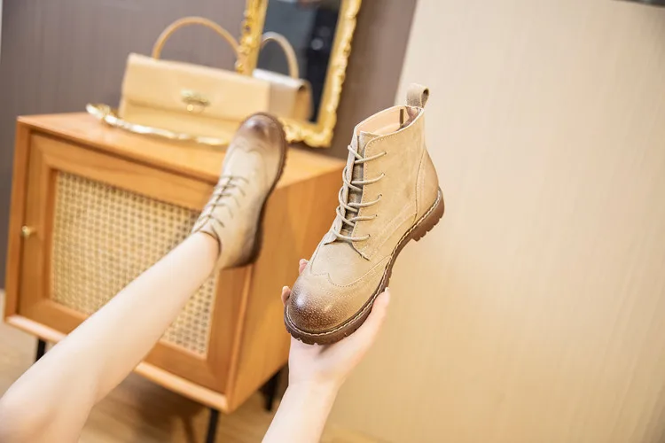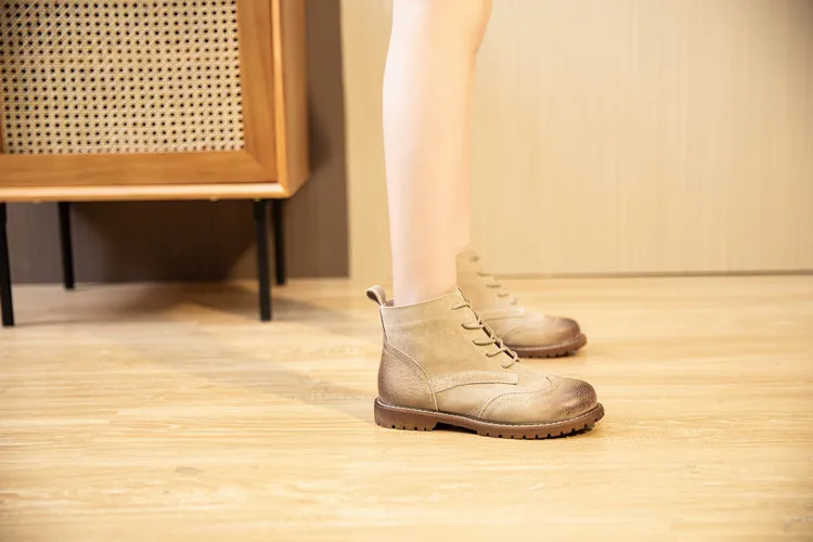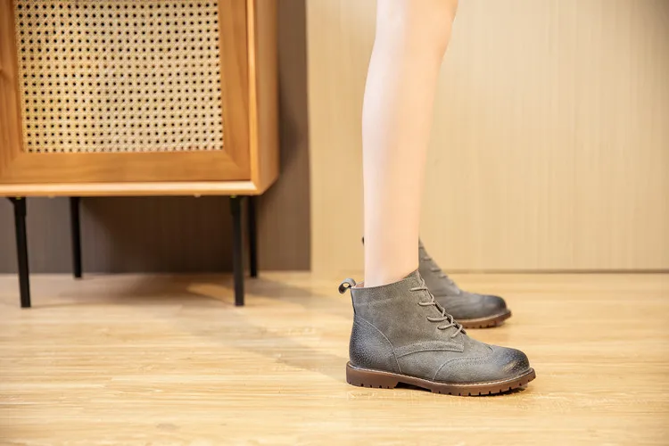 Este elegante estilo femenino se adapta al estilo británico de la época con un estilo retro moderno. Die klare Linienführung, die tradicional Schnürung und das hochwertige Material machen diese Ankle Boots zu einem stilvollen Begleiter für Herbst, Frühling and suave Wintertage. Perfekt für Frauen, die Wert auf Understatement, Qualität und Alltagstauglichkeit legen.