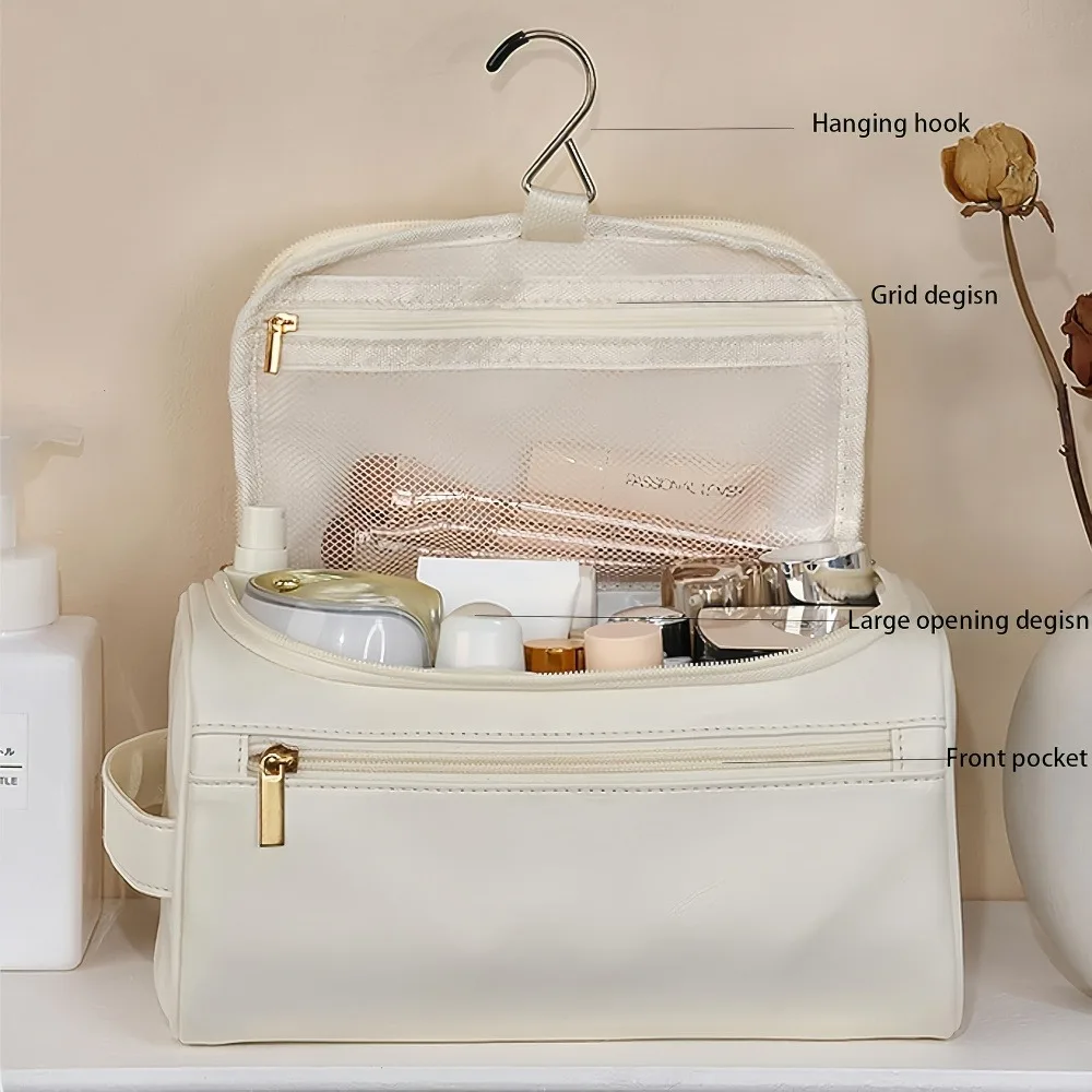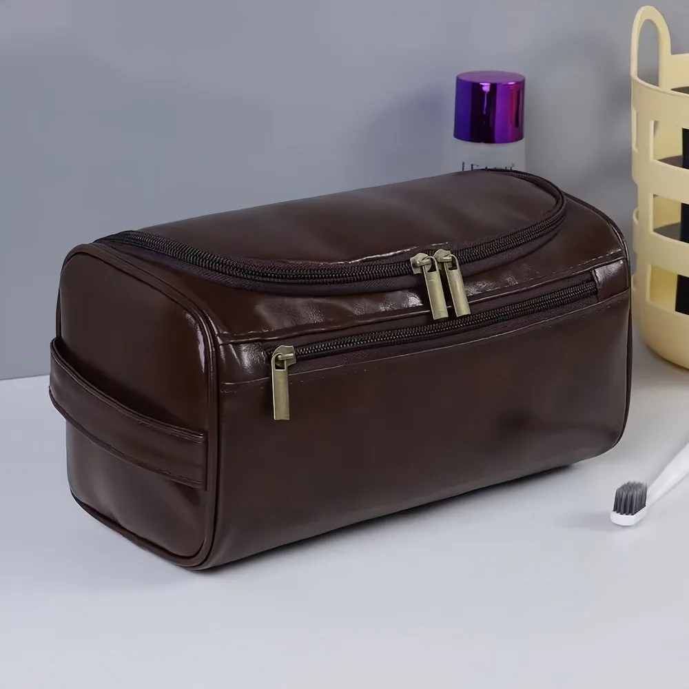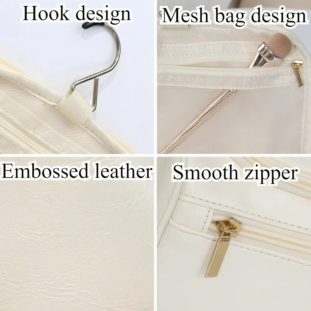 Geprägter Lederoptik Reise-Kulturbeutel – Hängender Kosmetik-Organizer mit großem Stauraum & Reißverschluss