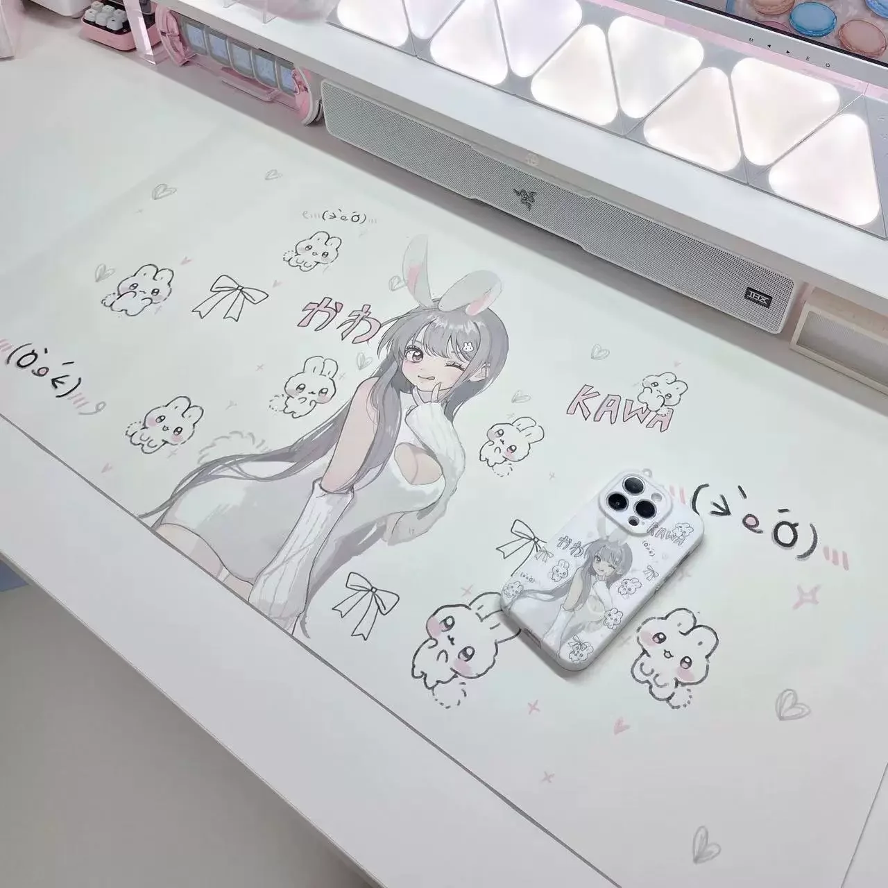 Girl Bunny PU Leder Schreibtischunterlage – Rutschfeste, Wasserdichte Desk Mat mit Kawaii Design für Büro, Homeoffice & Gaming