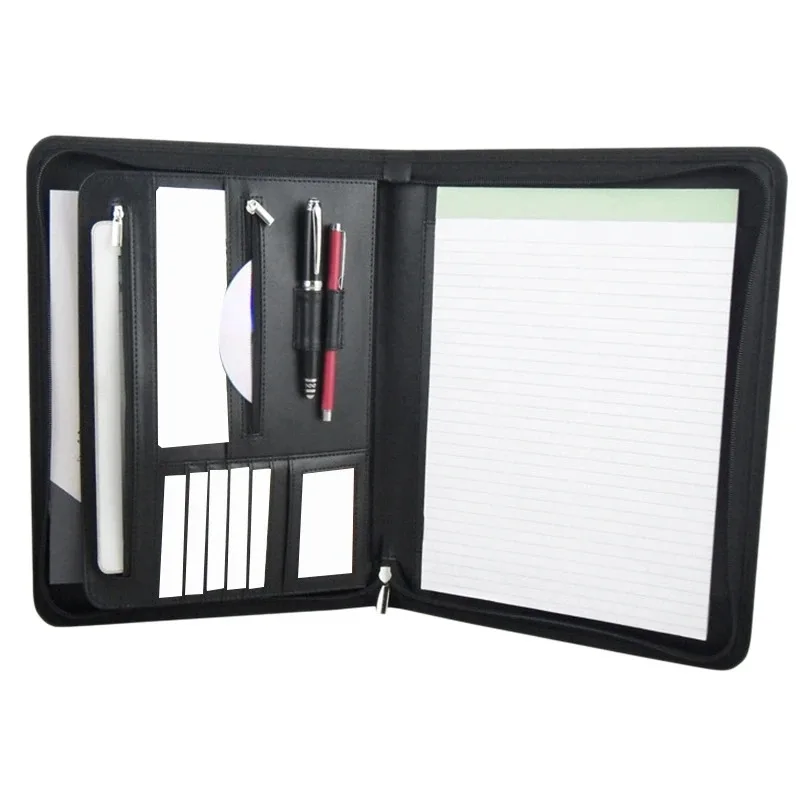 Große Leder A4 Business Portfolio Mappe mit Reißverschluss – Schwarzer Executive Dokumenten- & Schreiborganizer