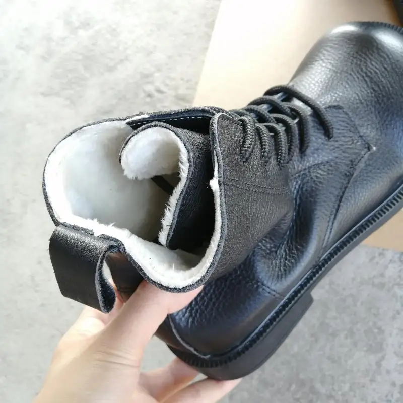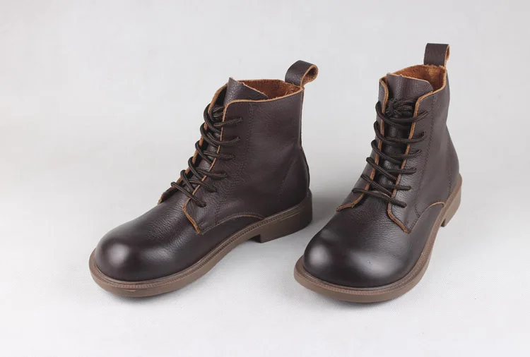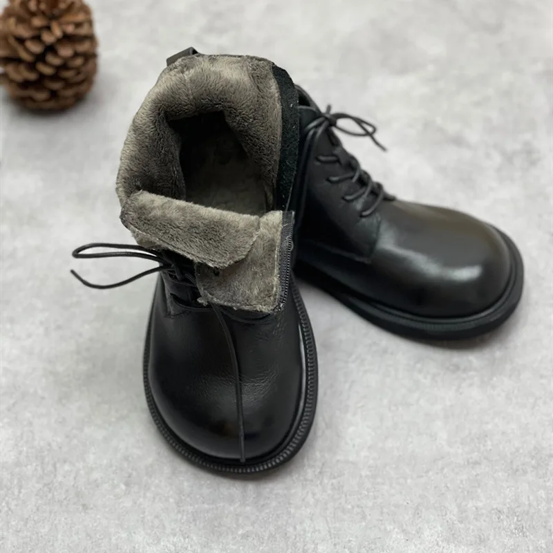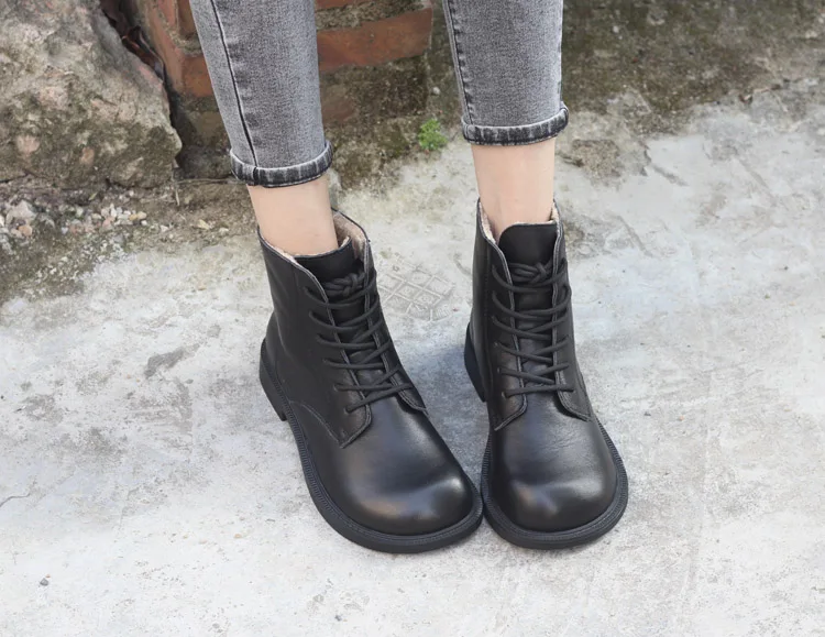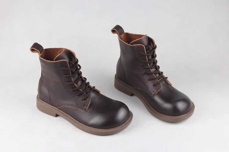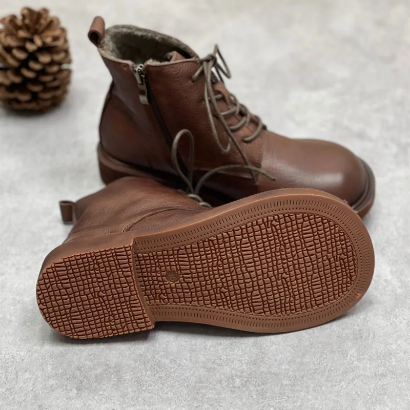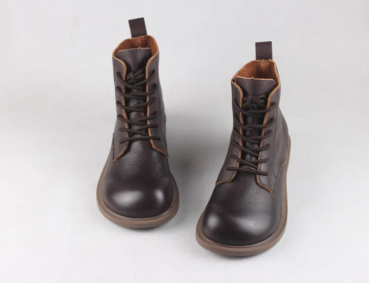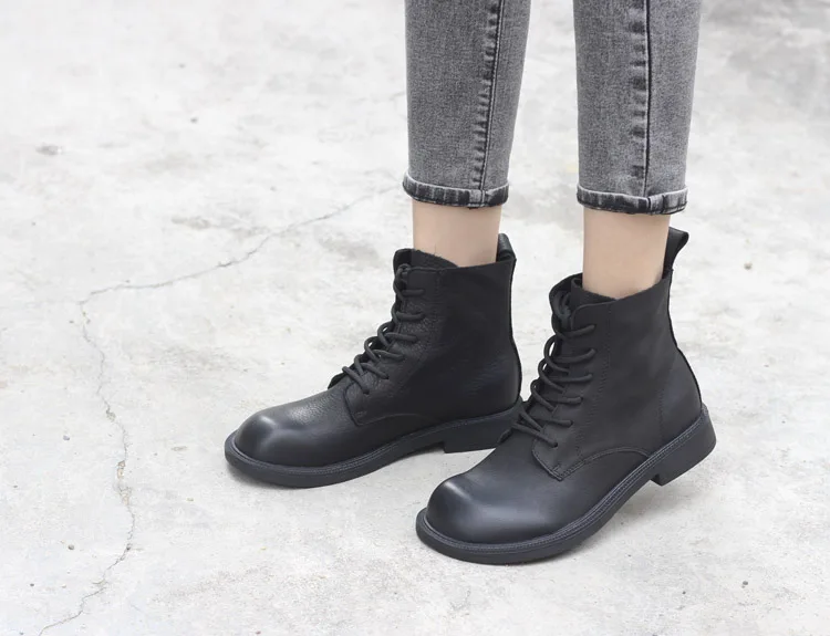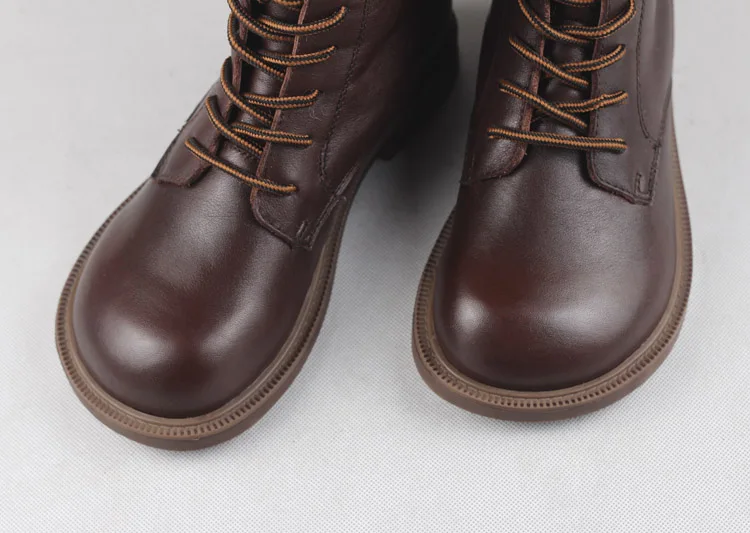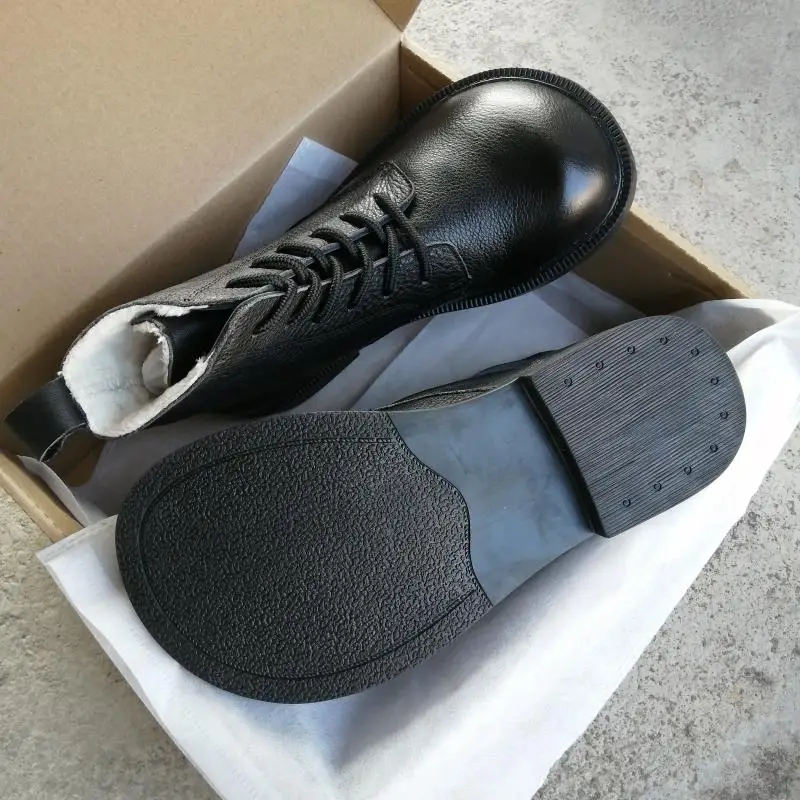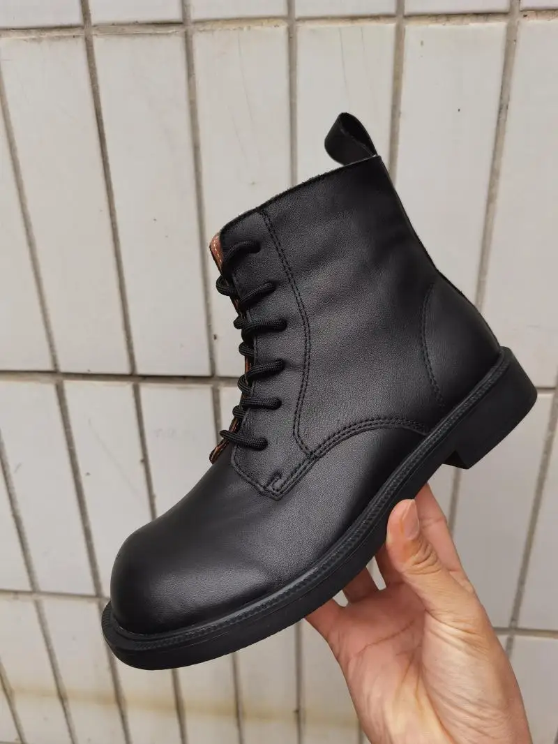 Handgefertigte Damen Leder Kurzstiefel aus Echtleder – Bequeme Flat Heel Boots mit breiter Zehenform, Warme Freizeitstiefel im British Style