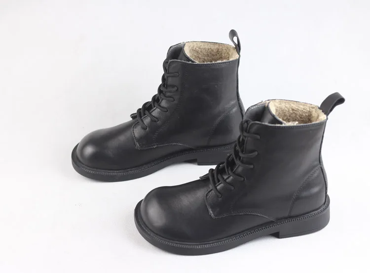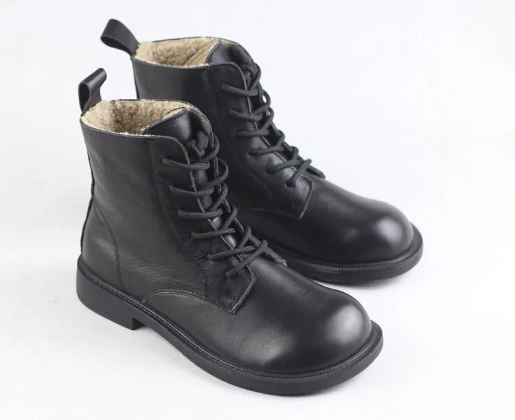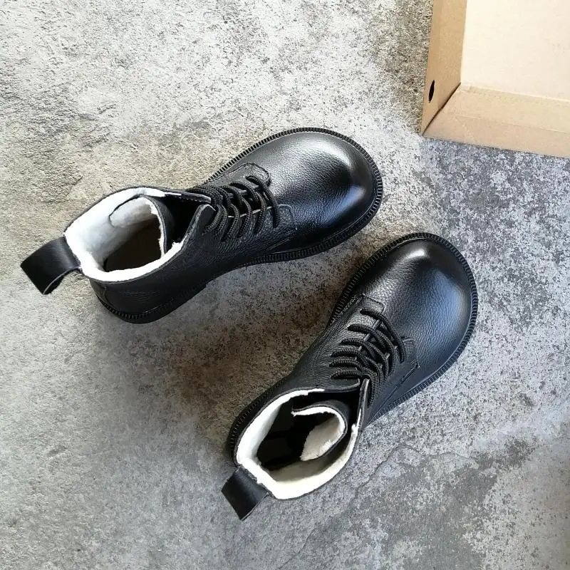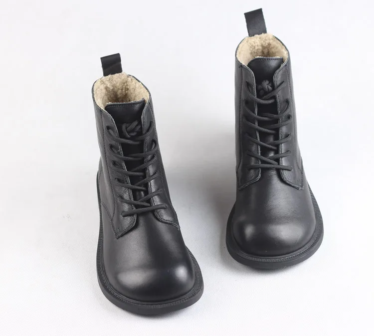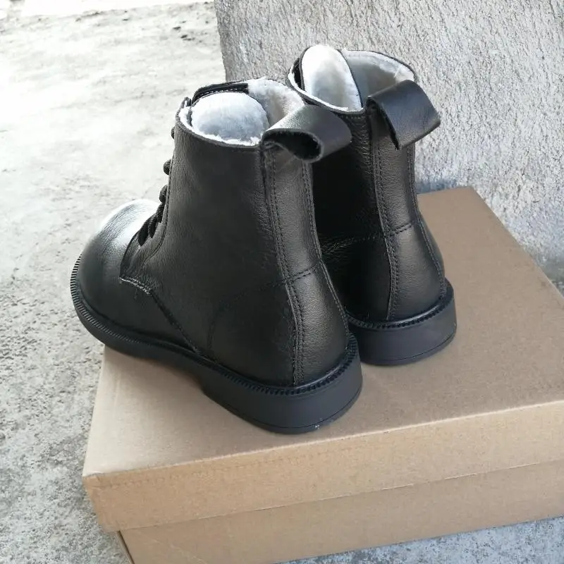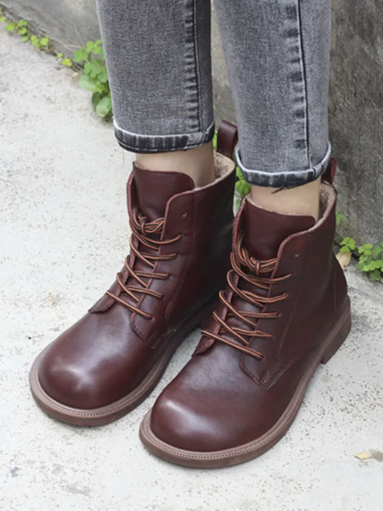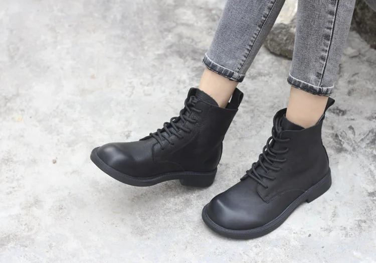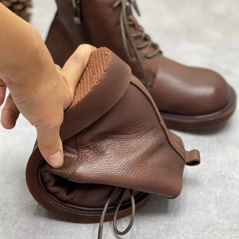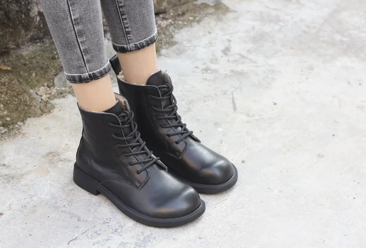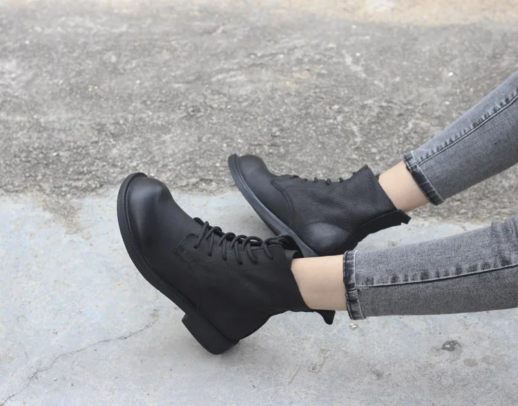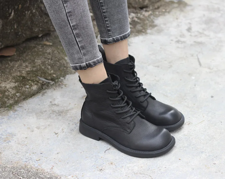 Handgefertigte Damen Leder Kurzstiefel aus Echtleder – Bequeme Flat Heel Boots mit breiter Zehenform, Warme Freizeitstiefel im British Style