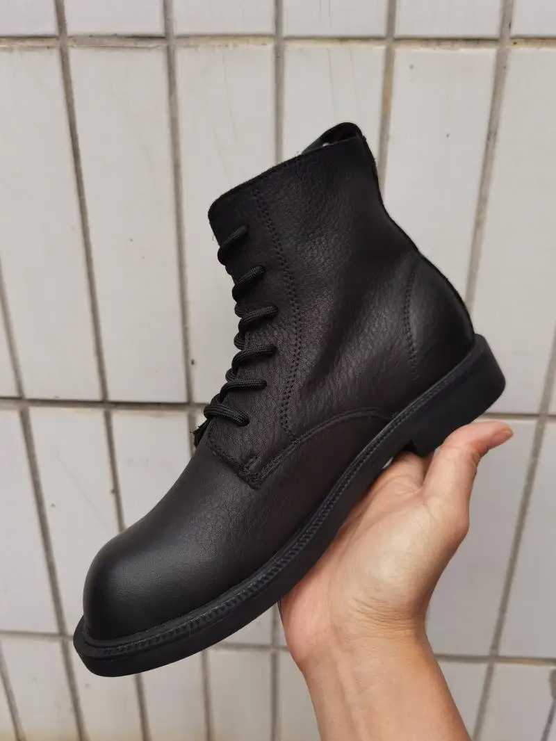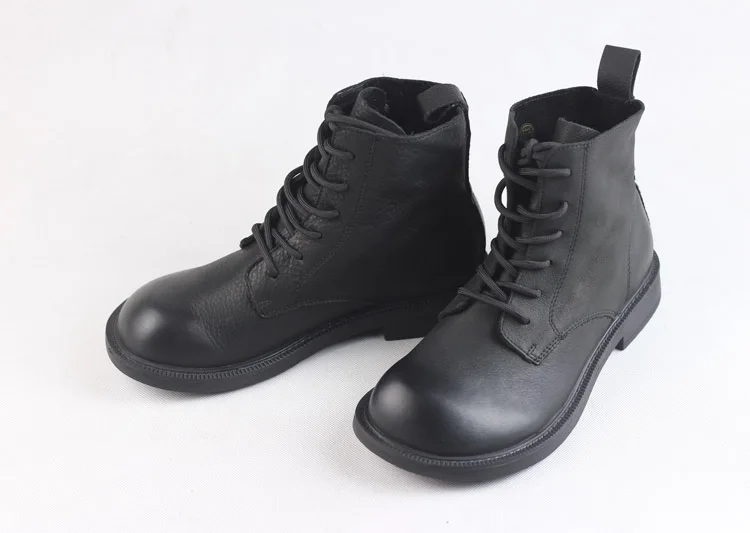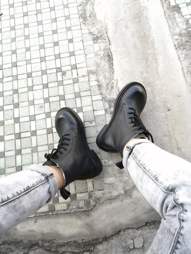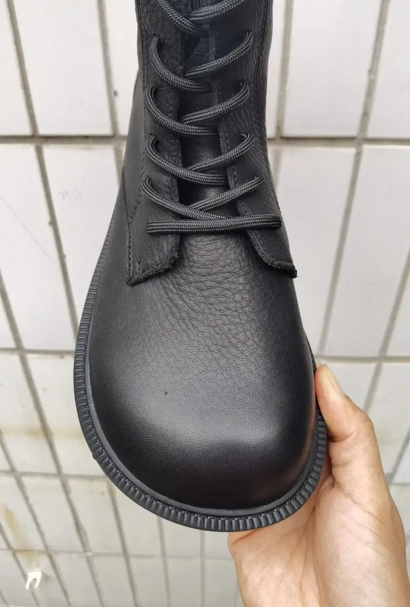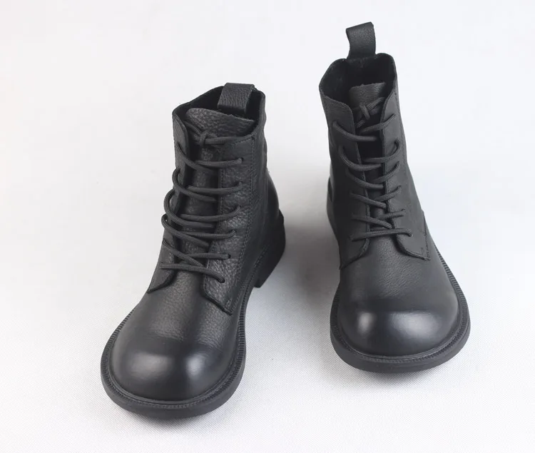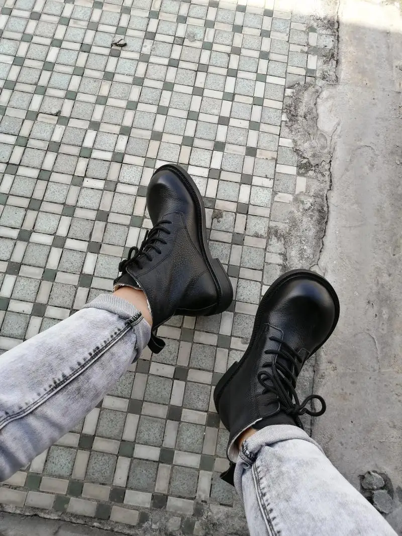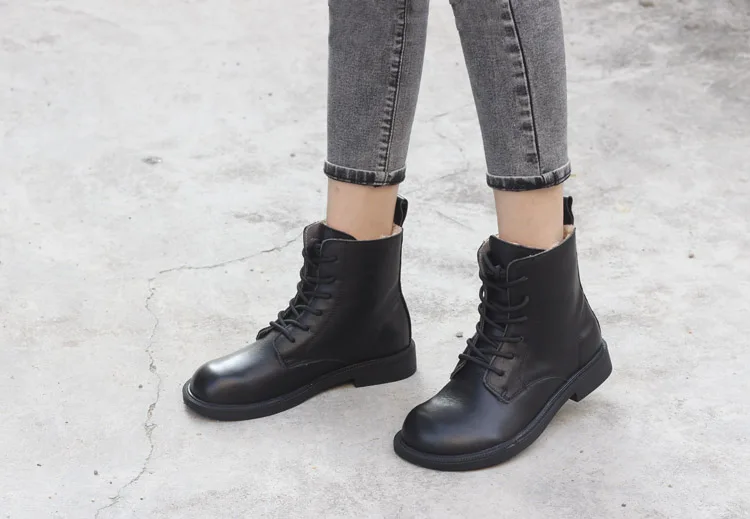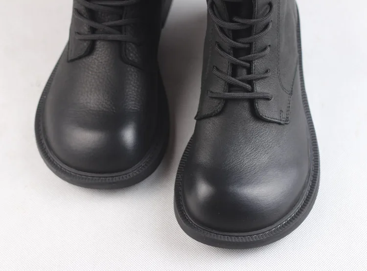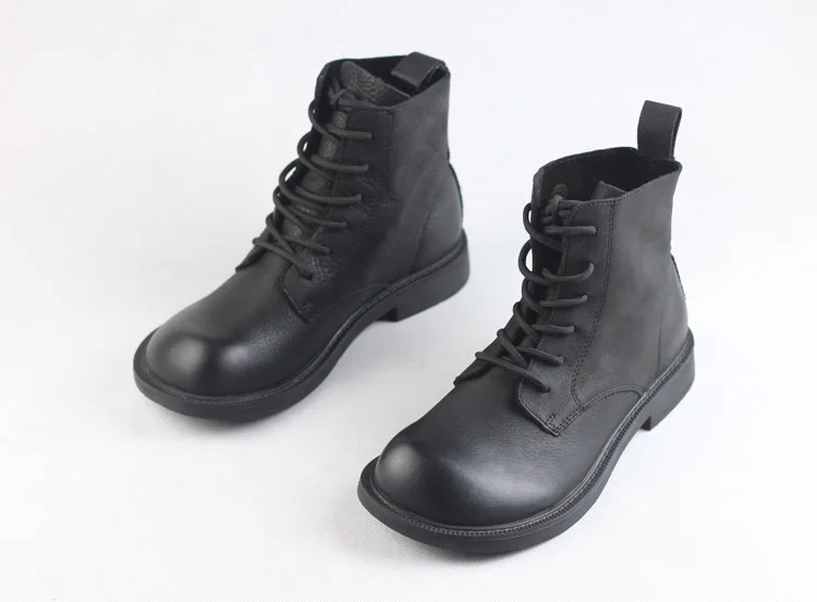 Handgefertigte Damen Leder Kurzstiefel aus Echtleder – Bequeme Flat Heel Boots mit breiter Zehenform, Warme Freizeitstiefel im British Style