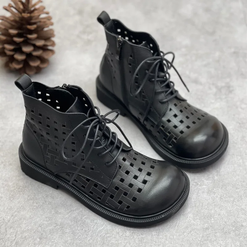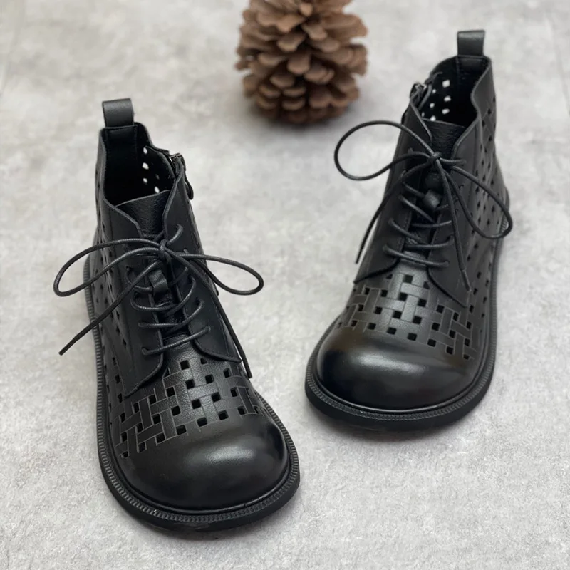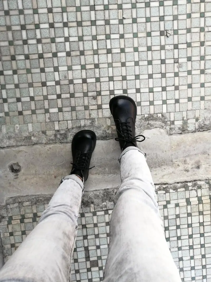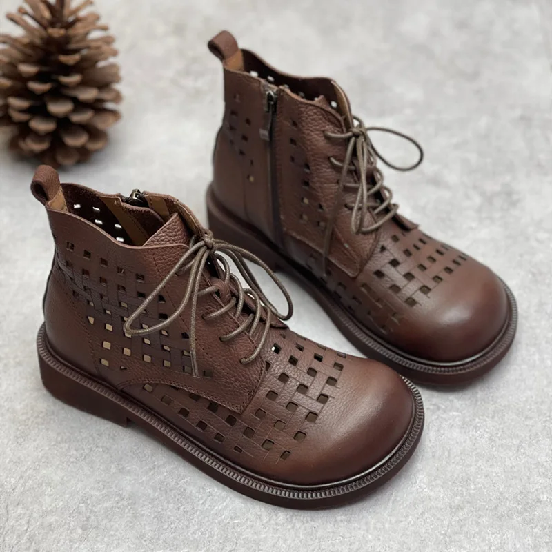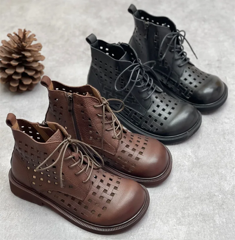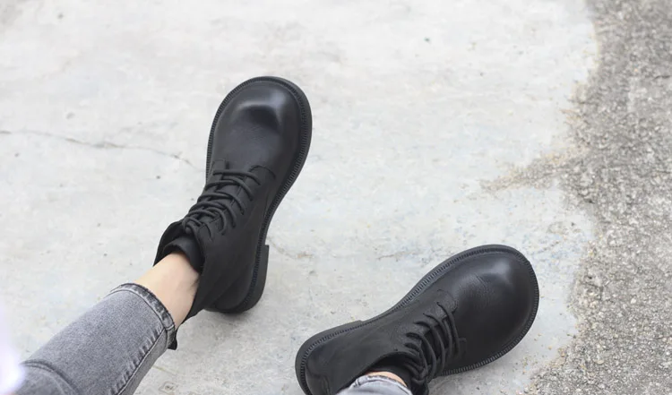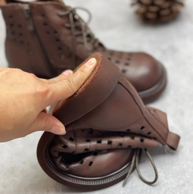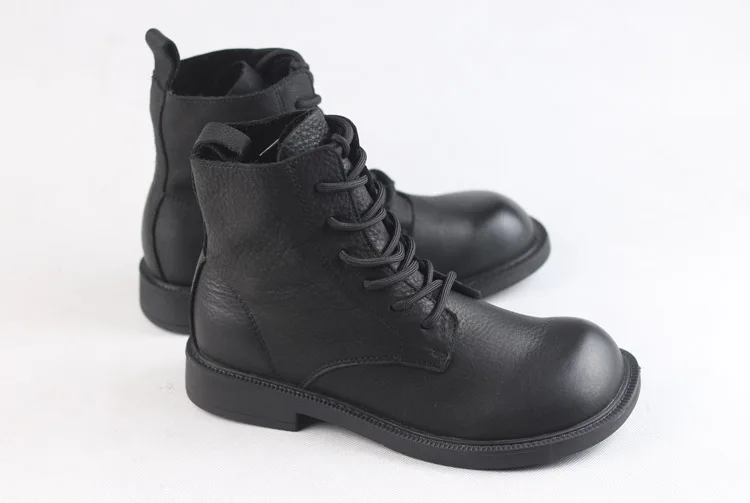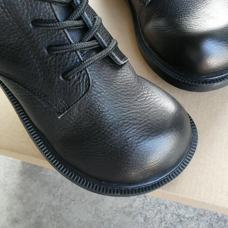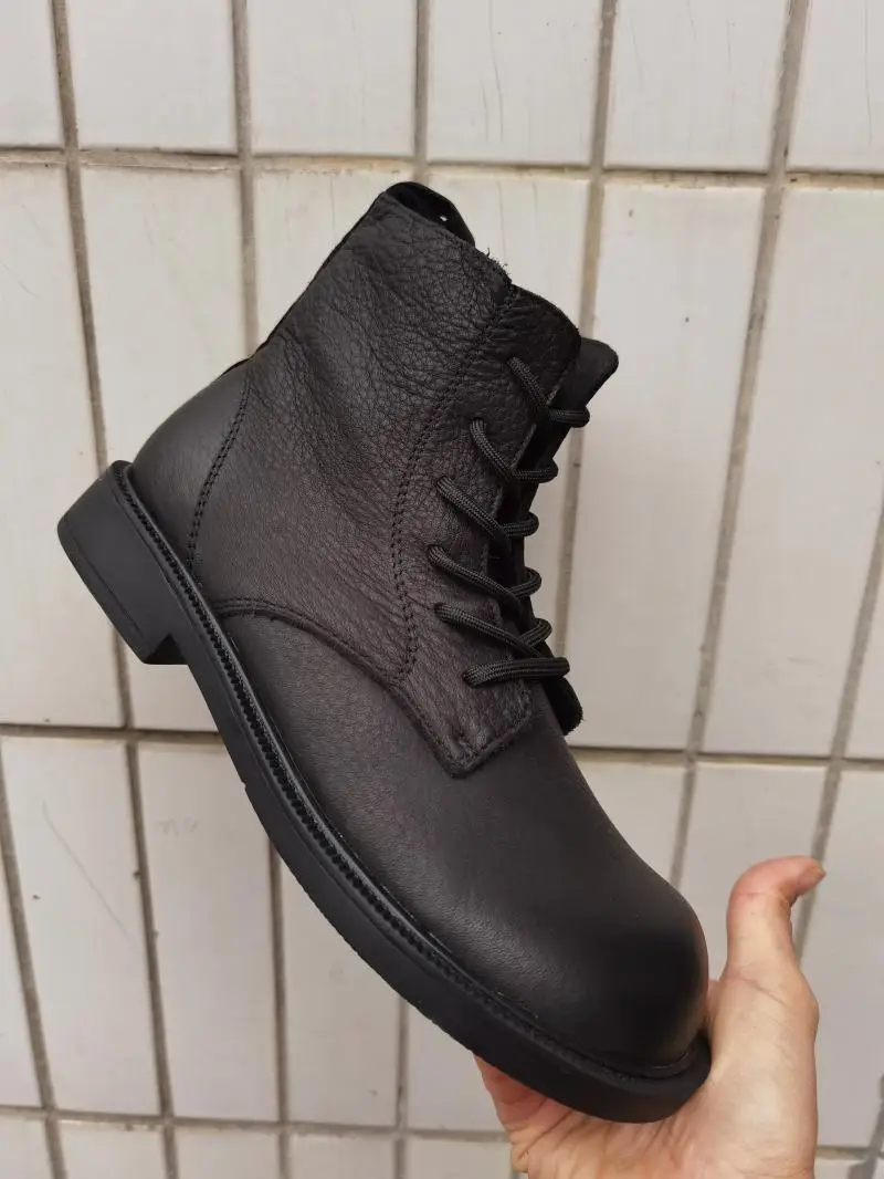 Handgefertigte Damen Leder Kurzstiefel aus Echtleder – Bequeme Flat Heel Boots mit breiter Zehenform, Warme Freizeitstiefel im British Style