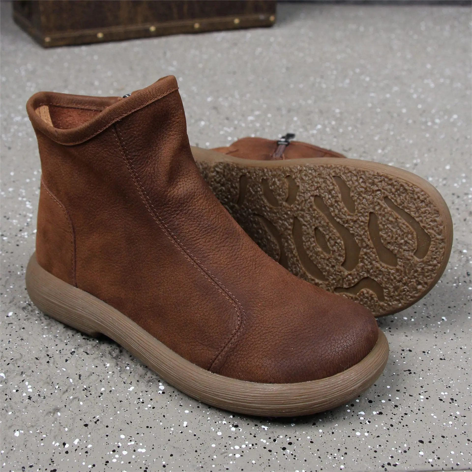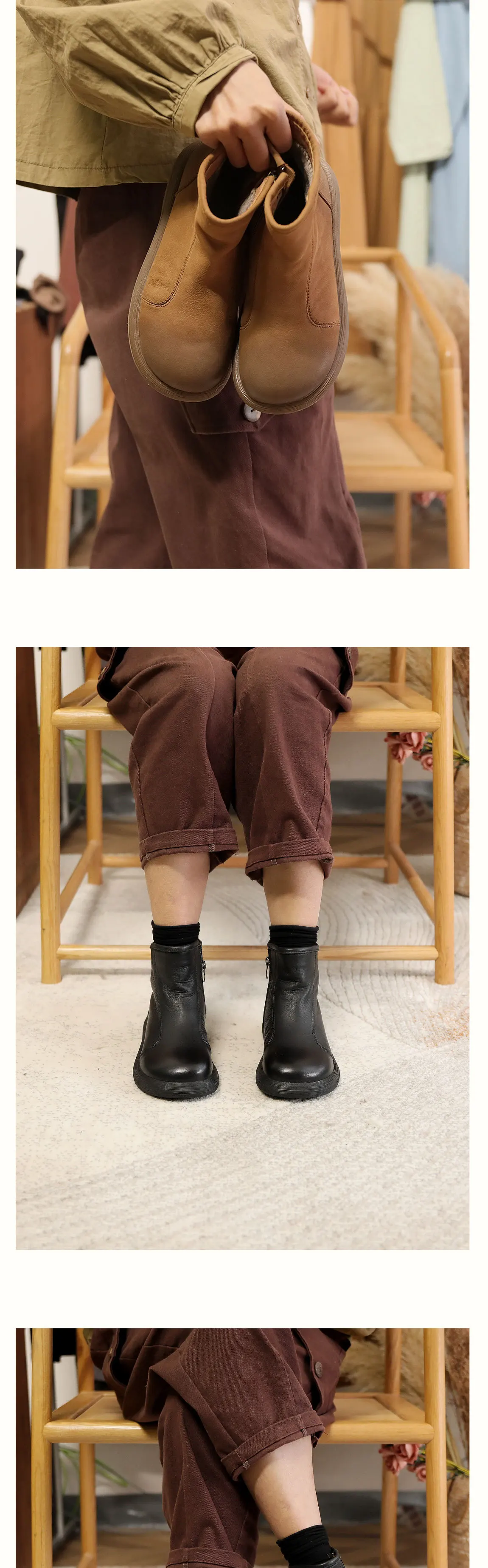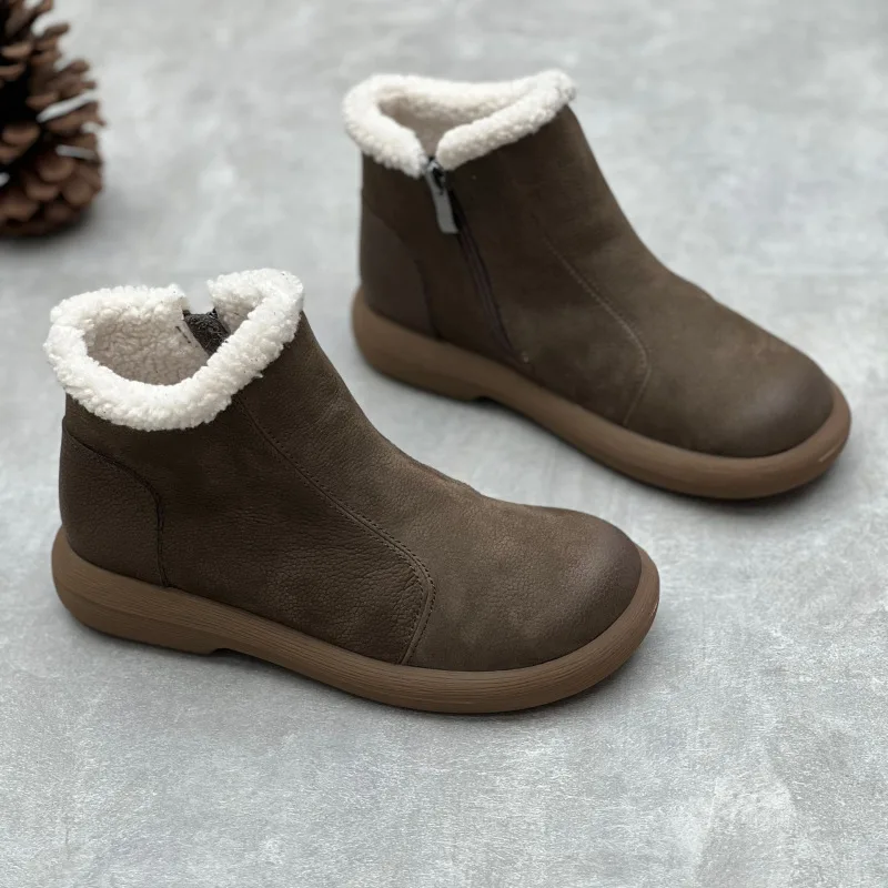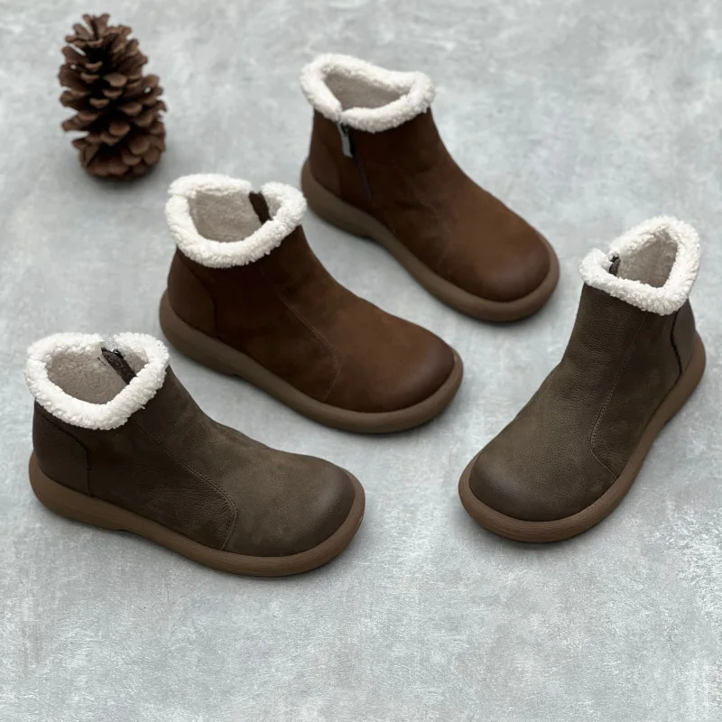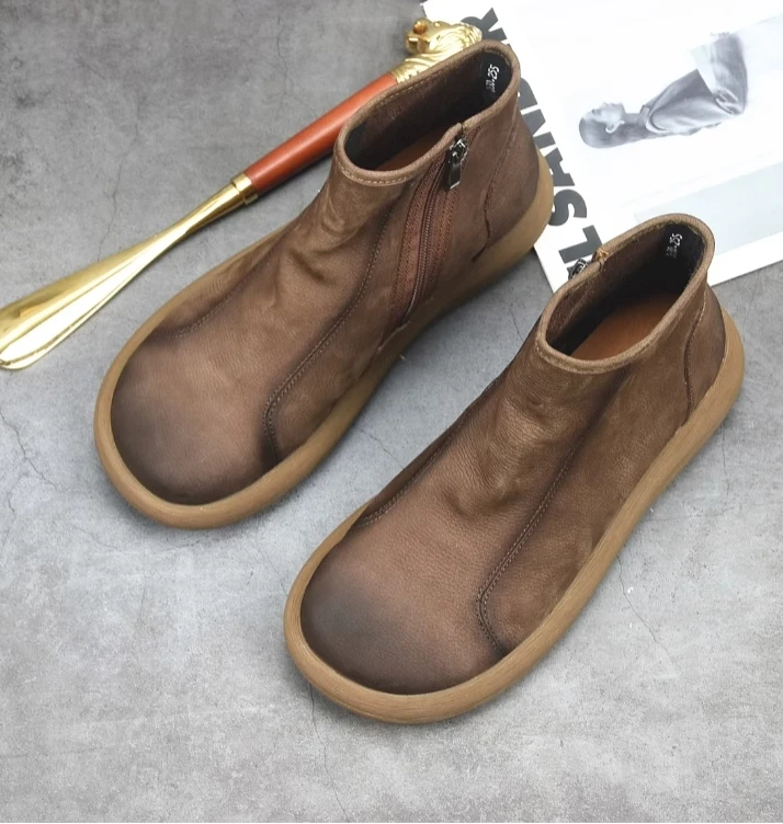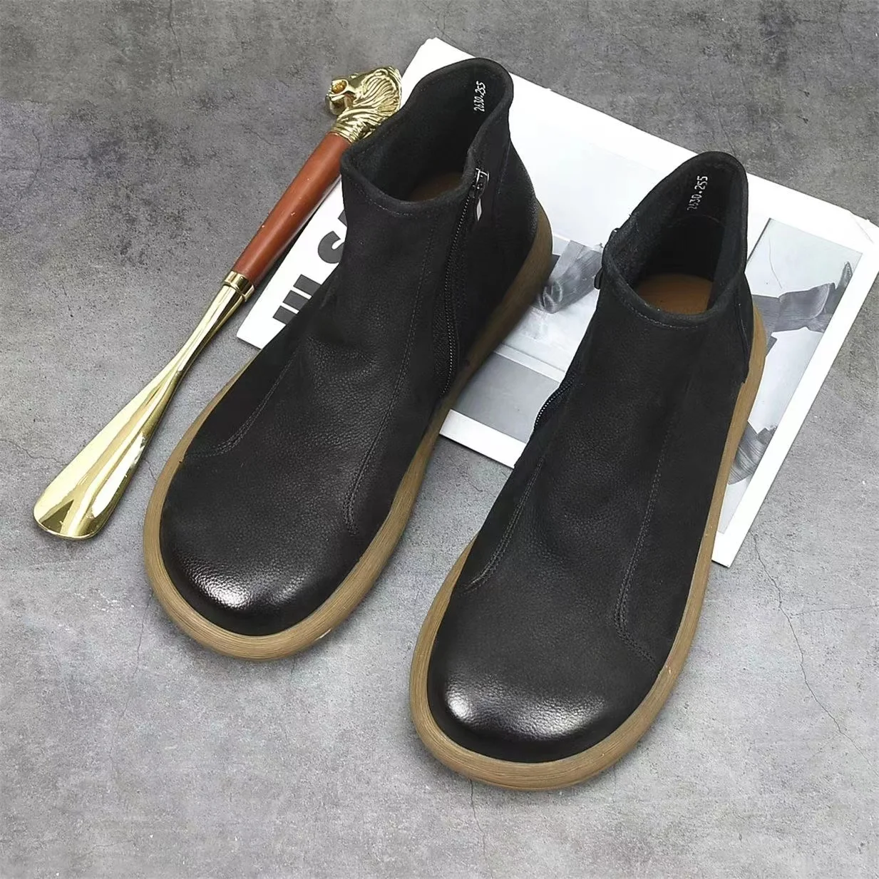 Handgefertigte Damen Stiefeletten aus echtem Leder – Warme Retro Ankle Boots mit Rundspitze & Reißverschluss (Größe 35–45)