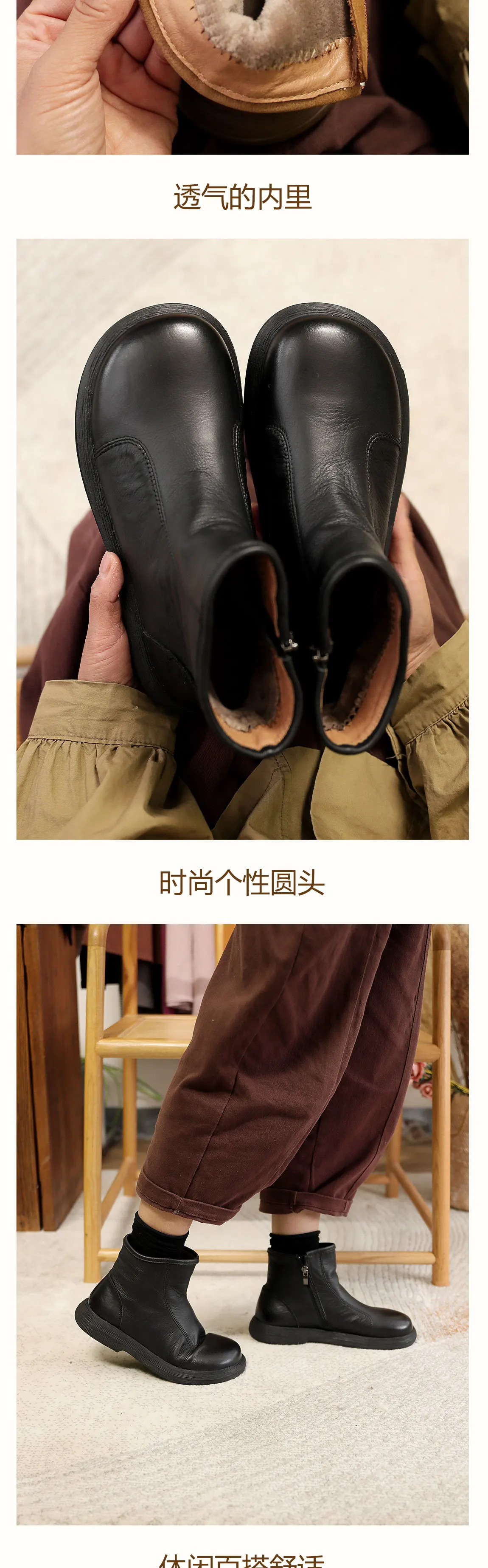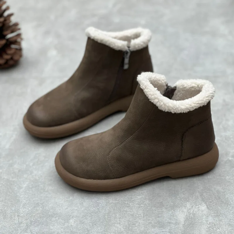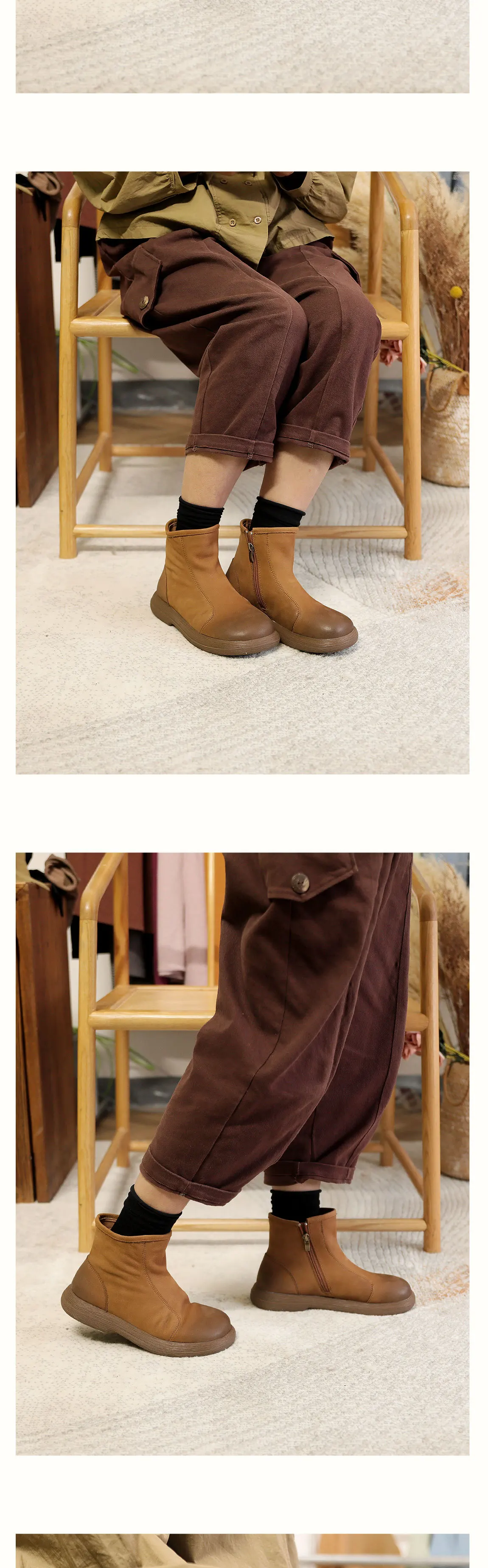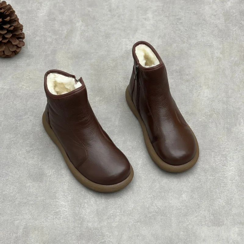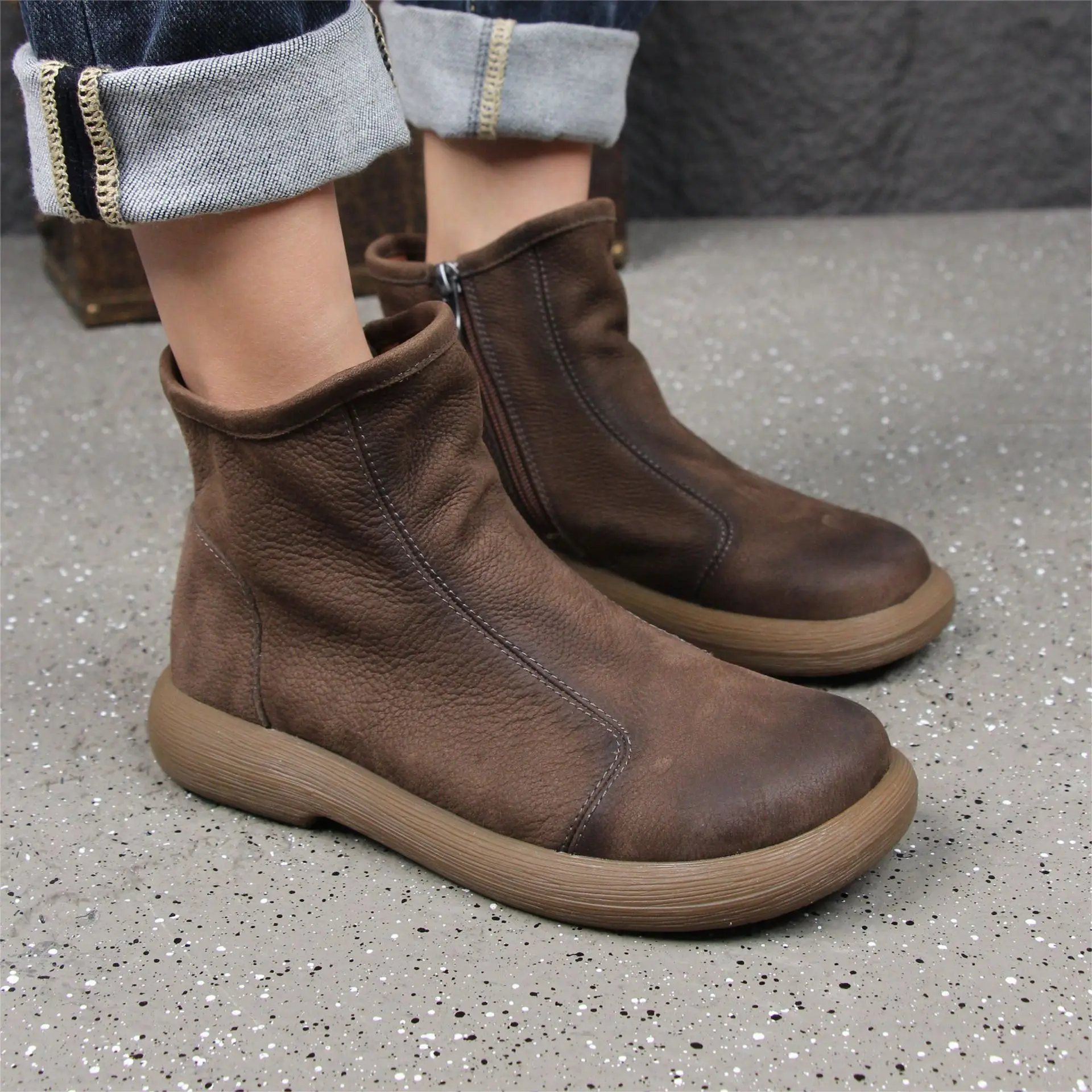 Handgefertigte Damen Stiefeletten aus echtem Leder – Warme Retro Ankle Boots mit Rundspitze & Reißverschluss (Größe 35–45)
