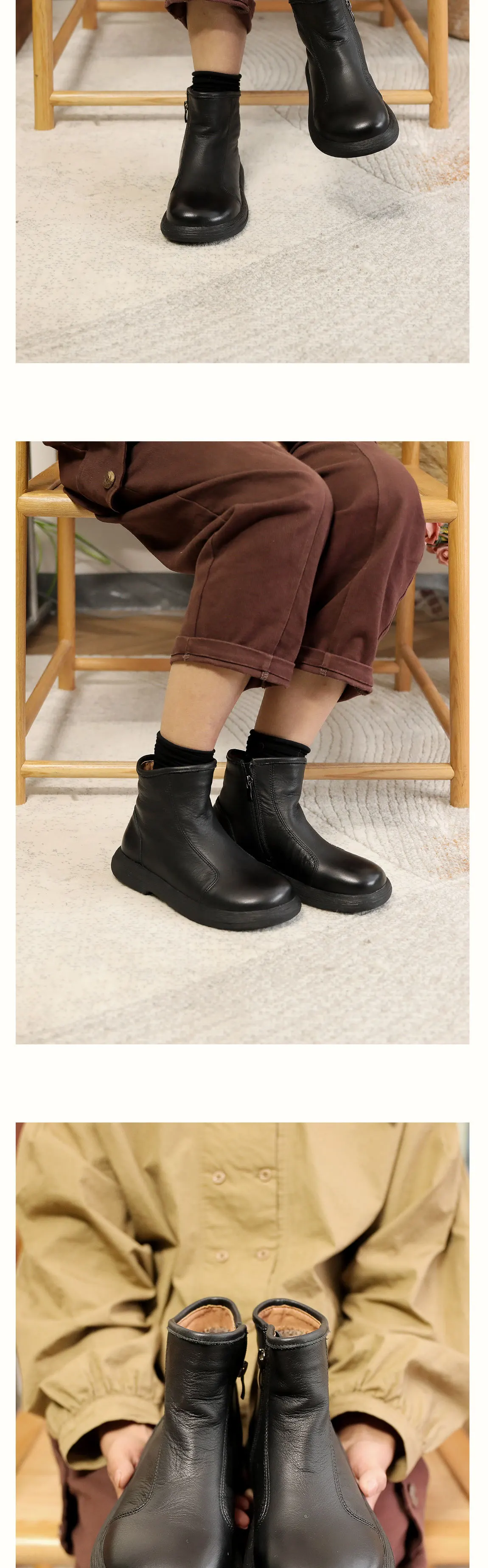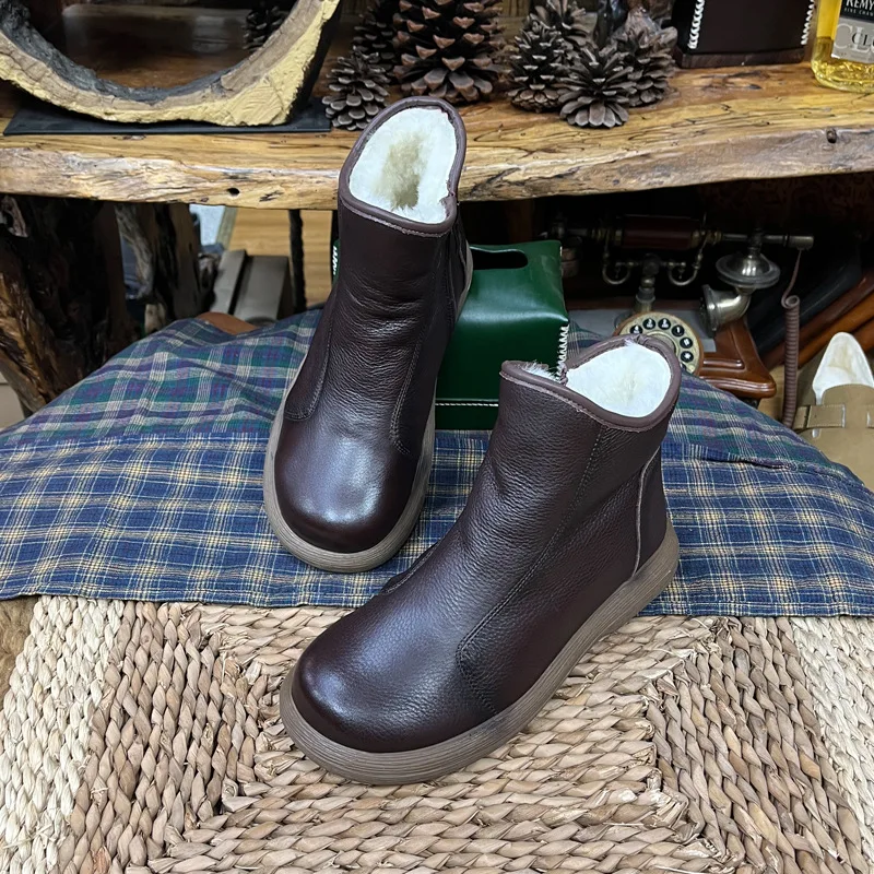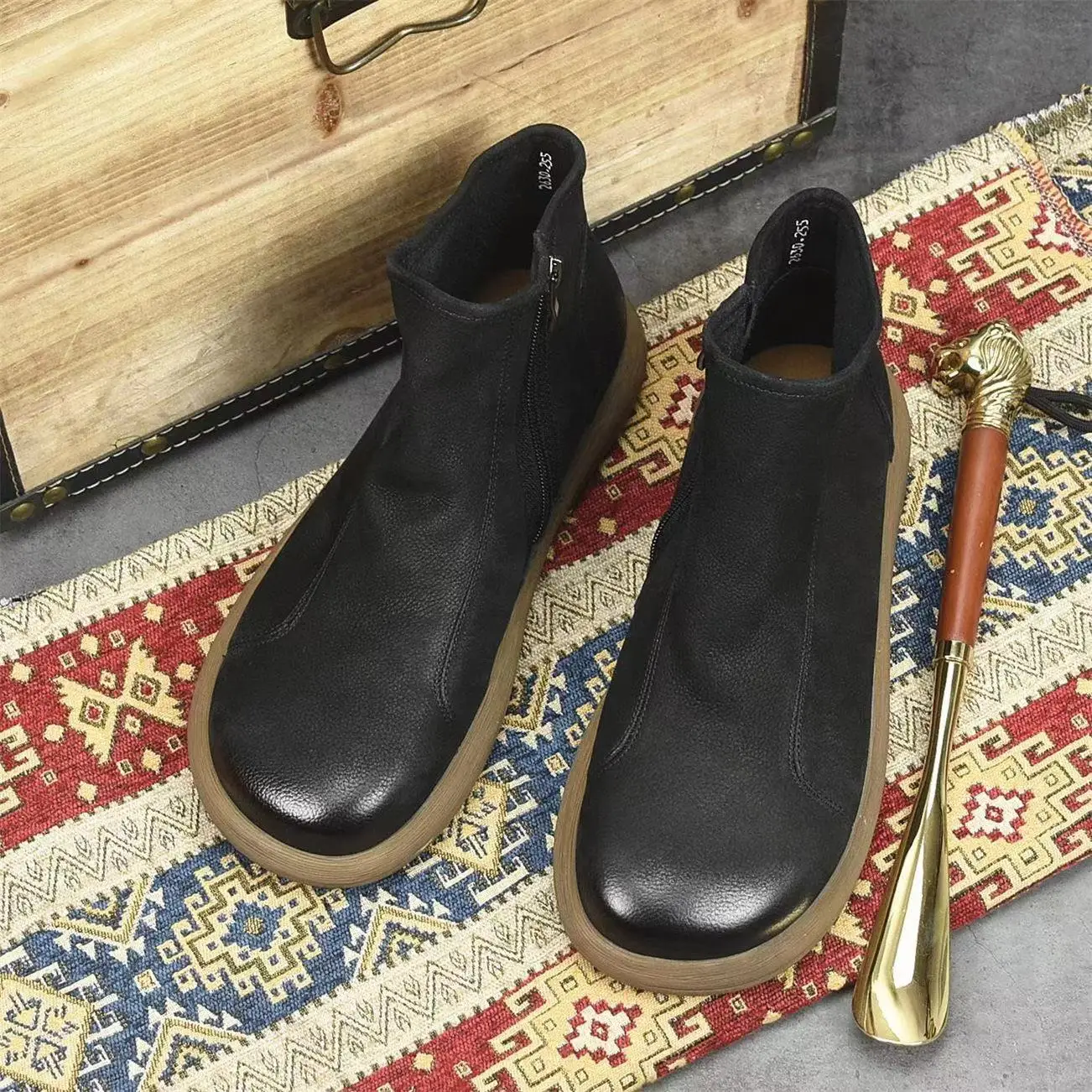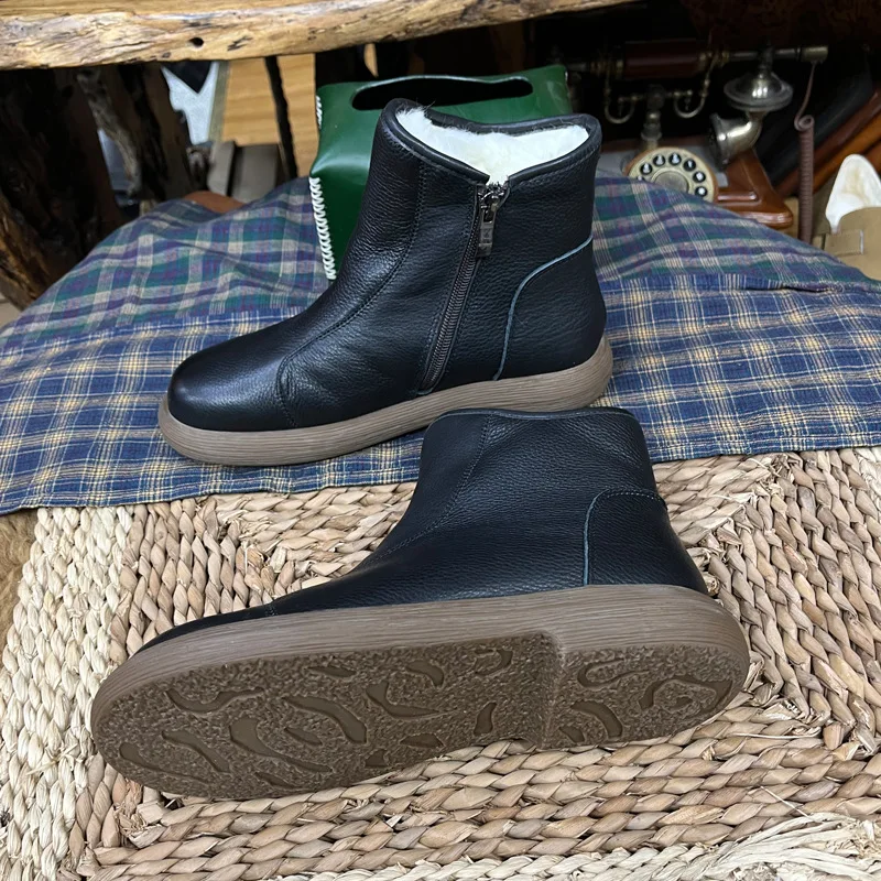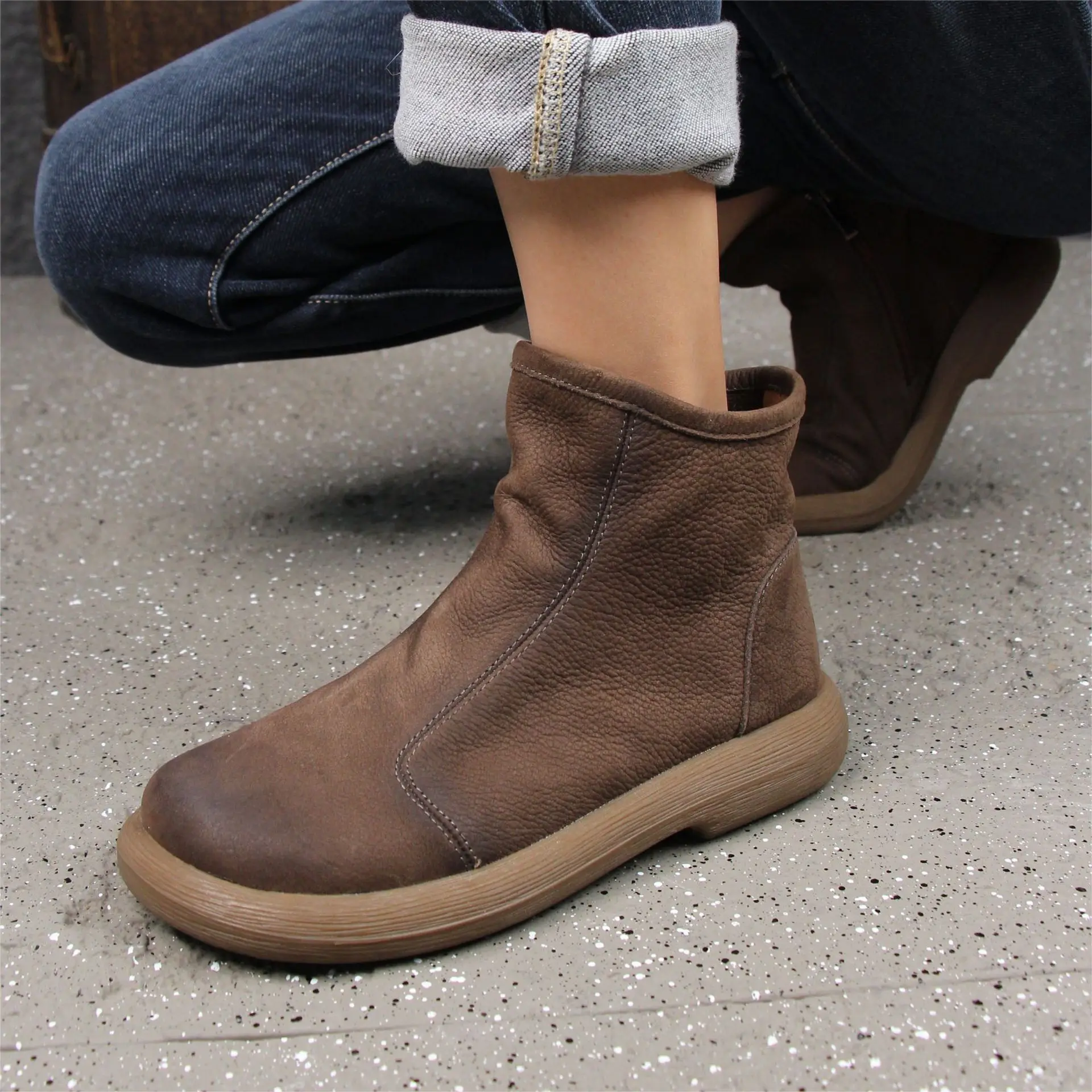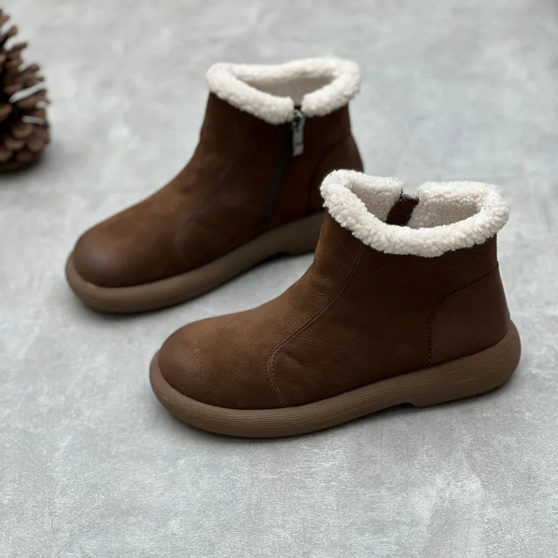 Handgefertigte Damen Stiefeletten aus echtem Leder – Warme Retro Ankle Boots mit Rundspitze & Reißverschluss (Größe 35–45)