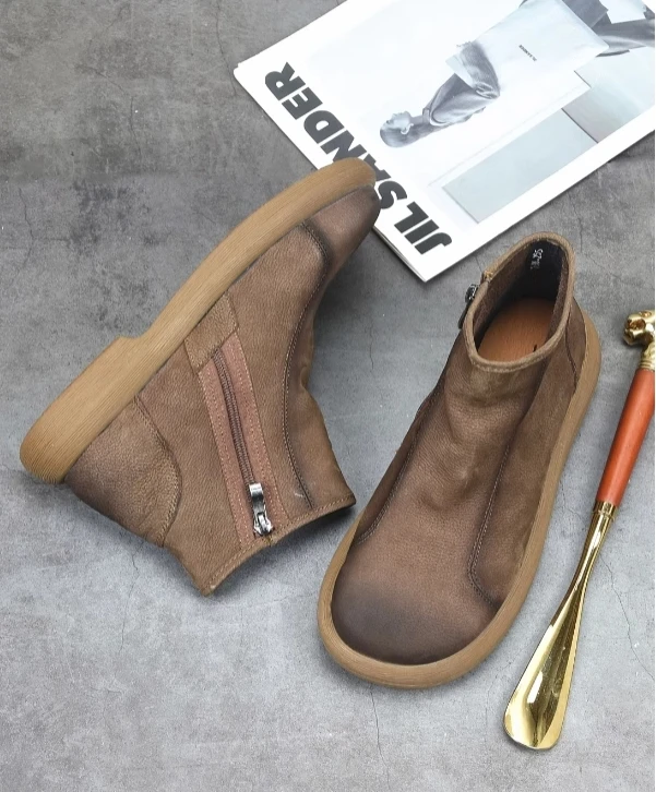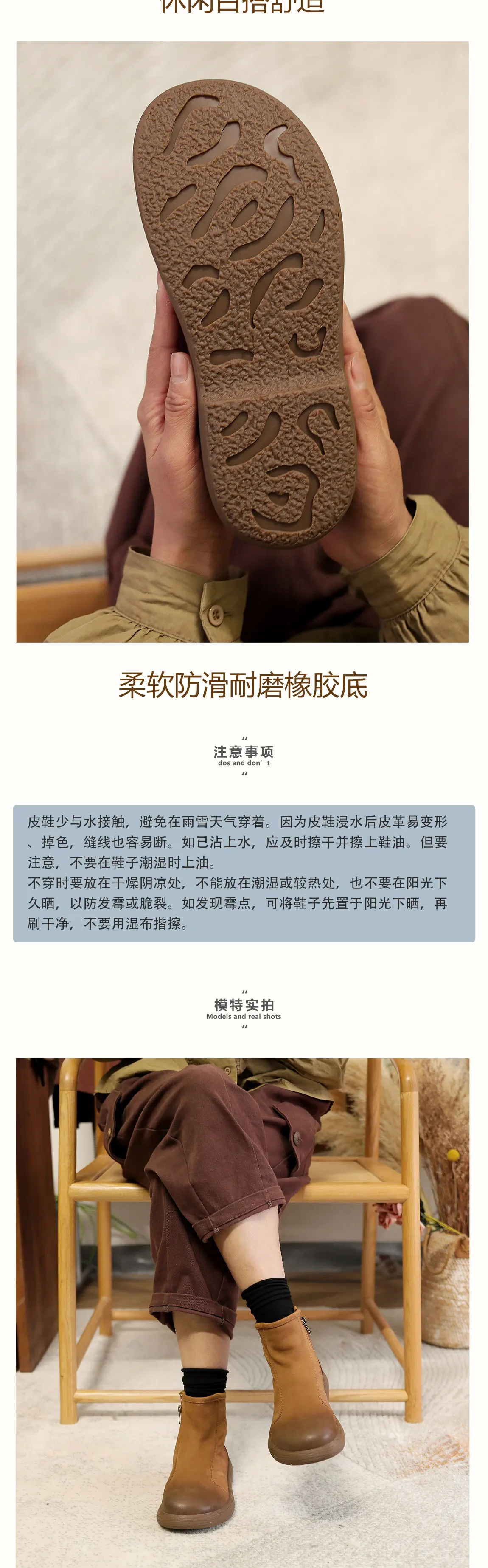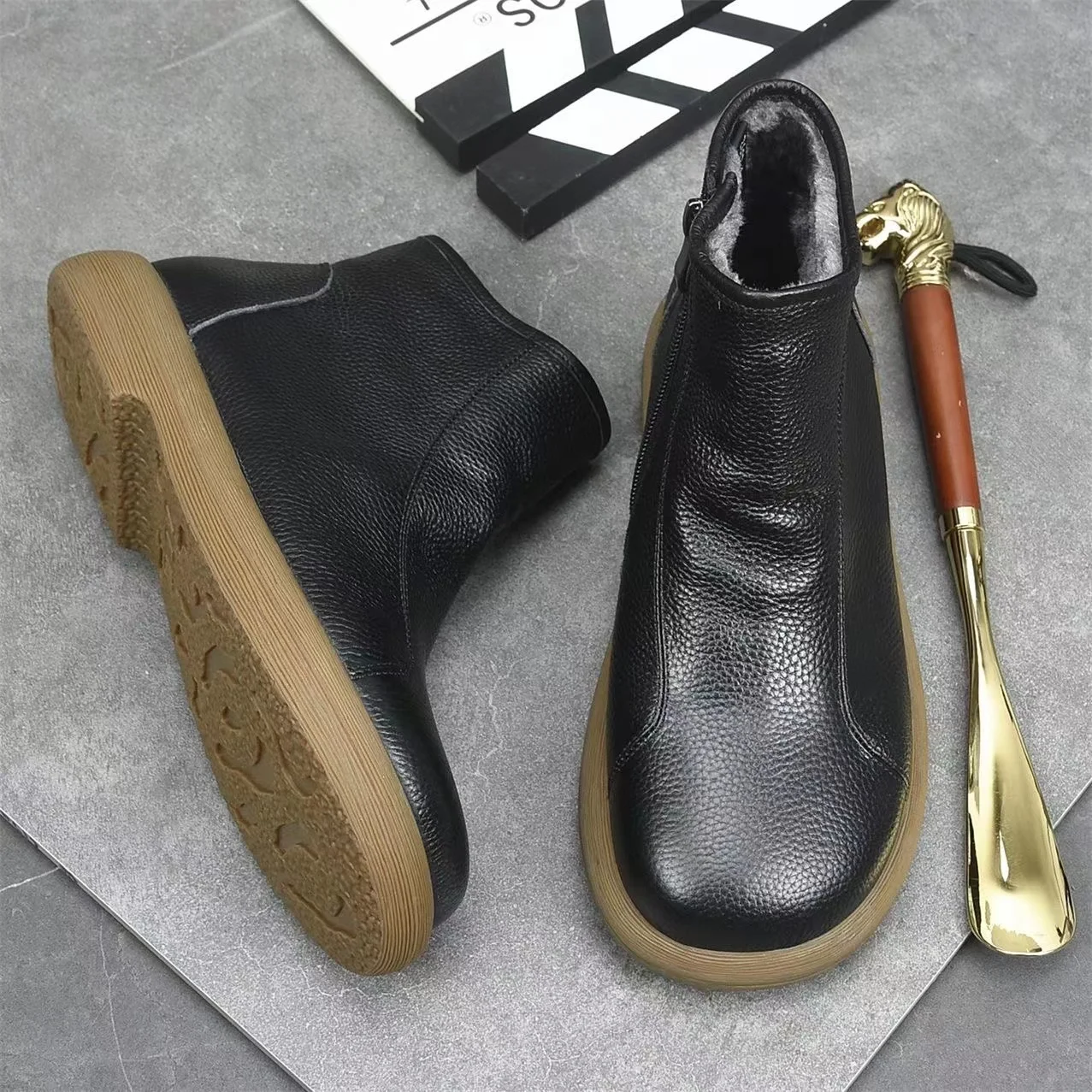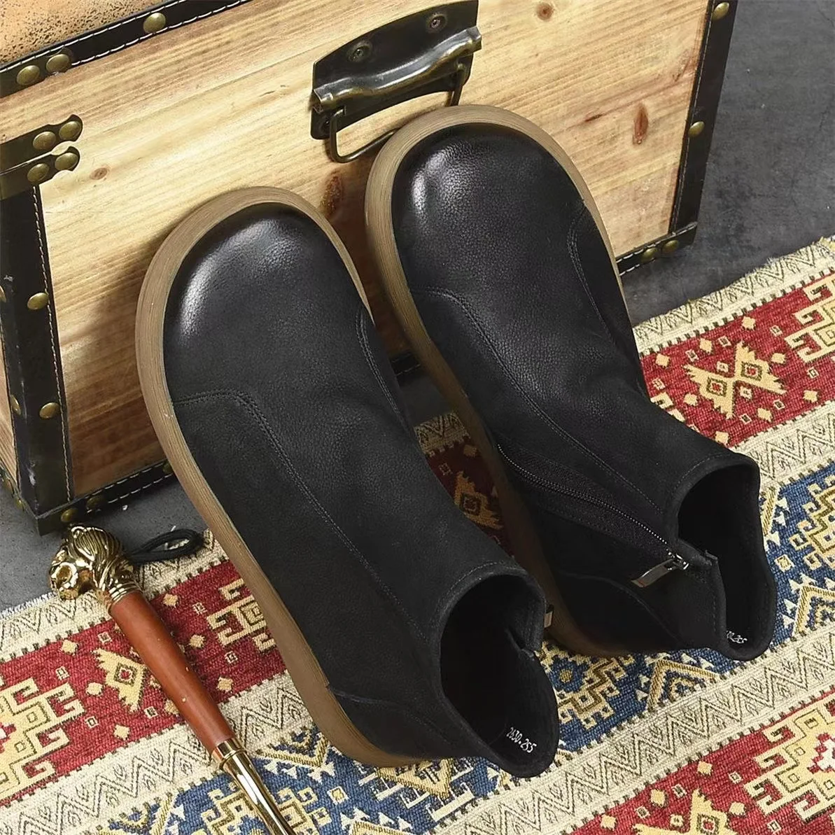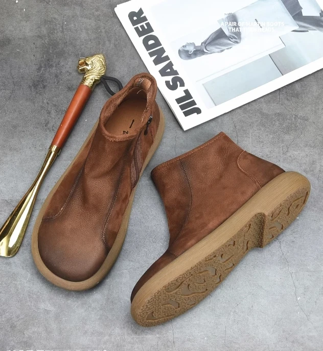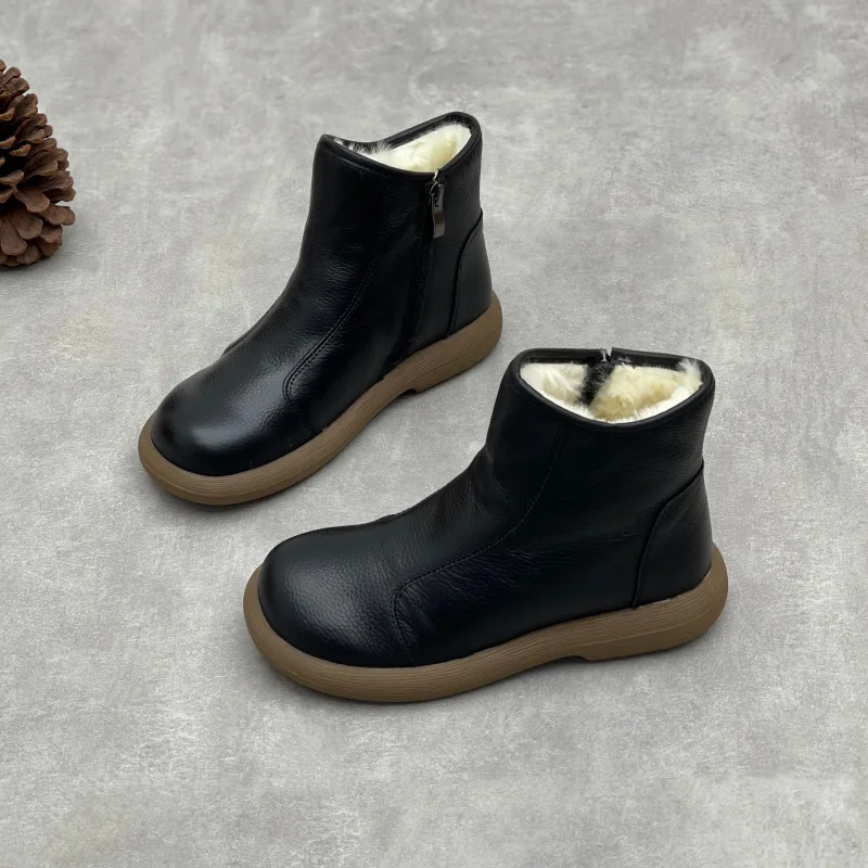 Handgefertigte Damen Stiefeletten aus echtem Leder – Warme Retro Ankle Boots mit Rundspitze & Reißverschluss (Größe 35–45)