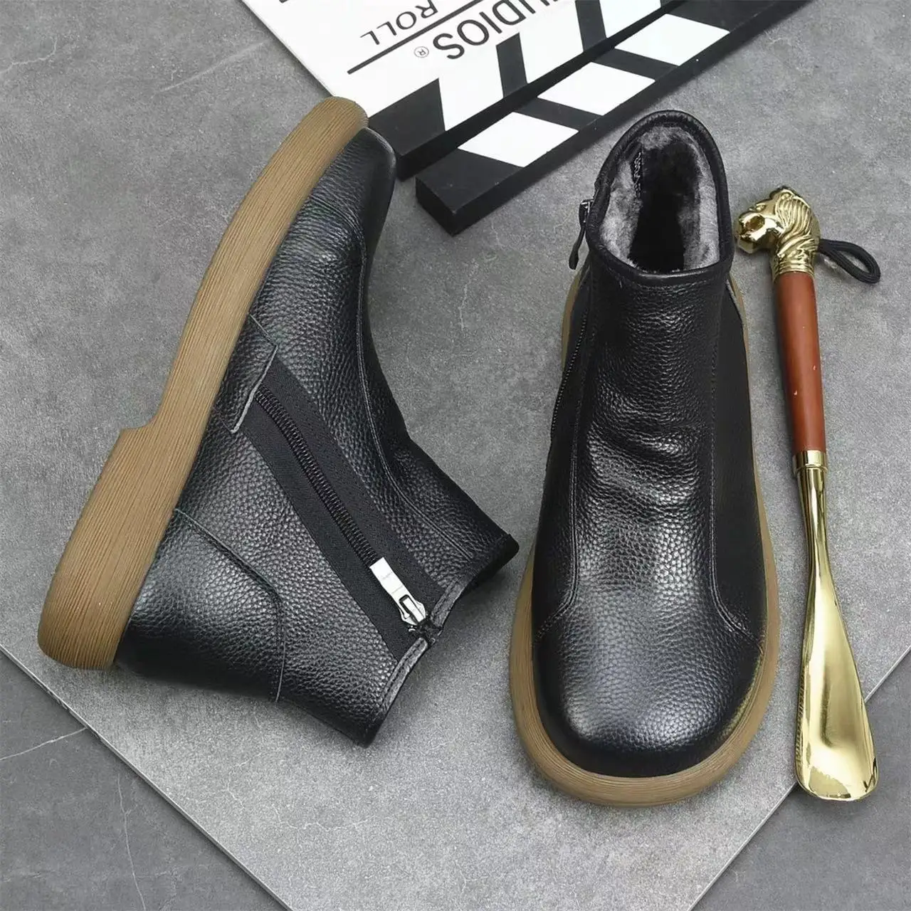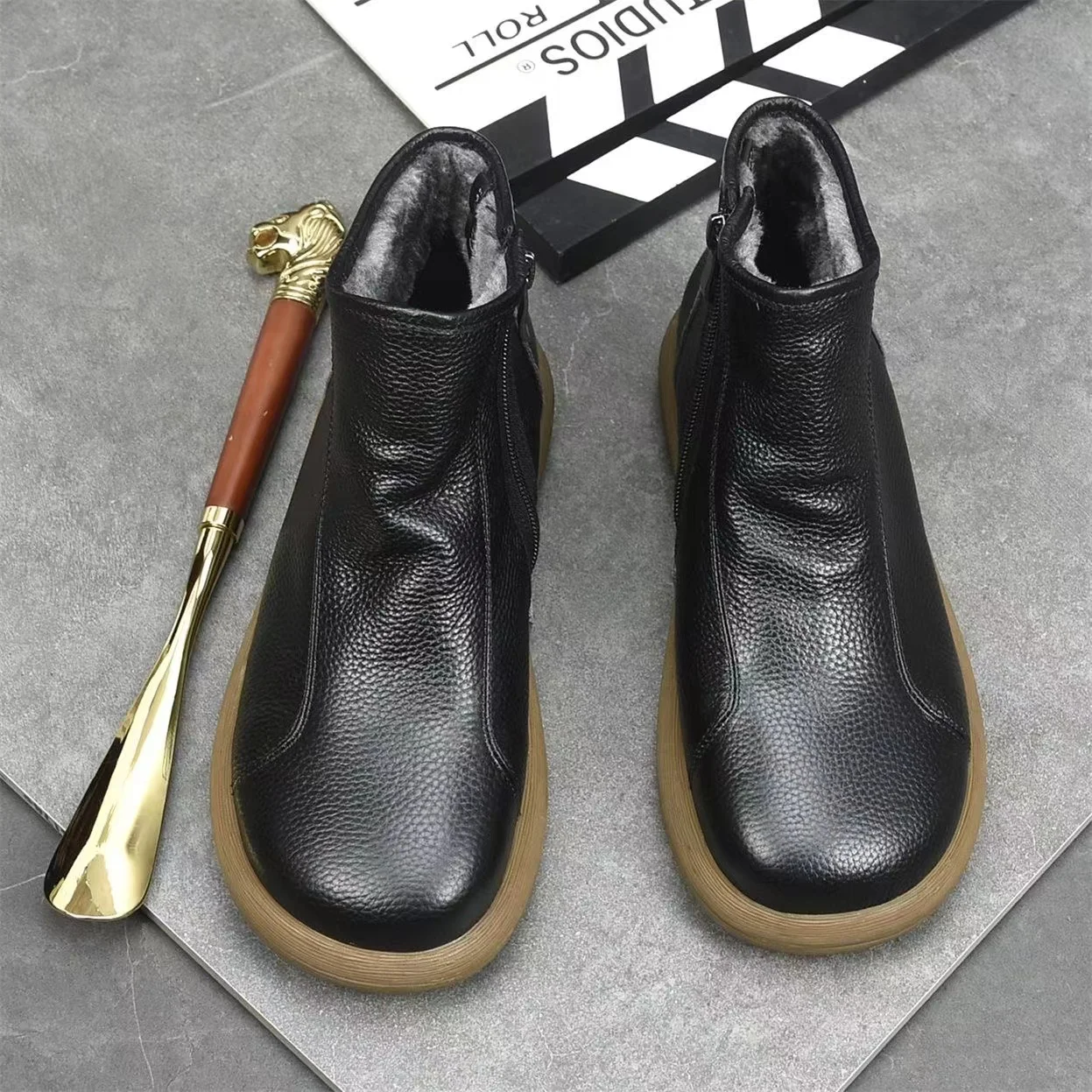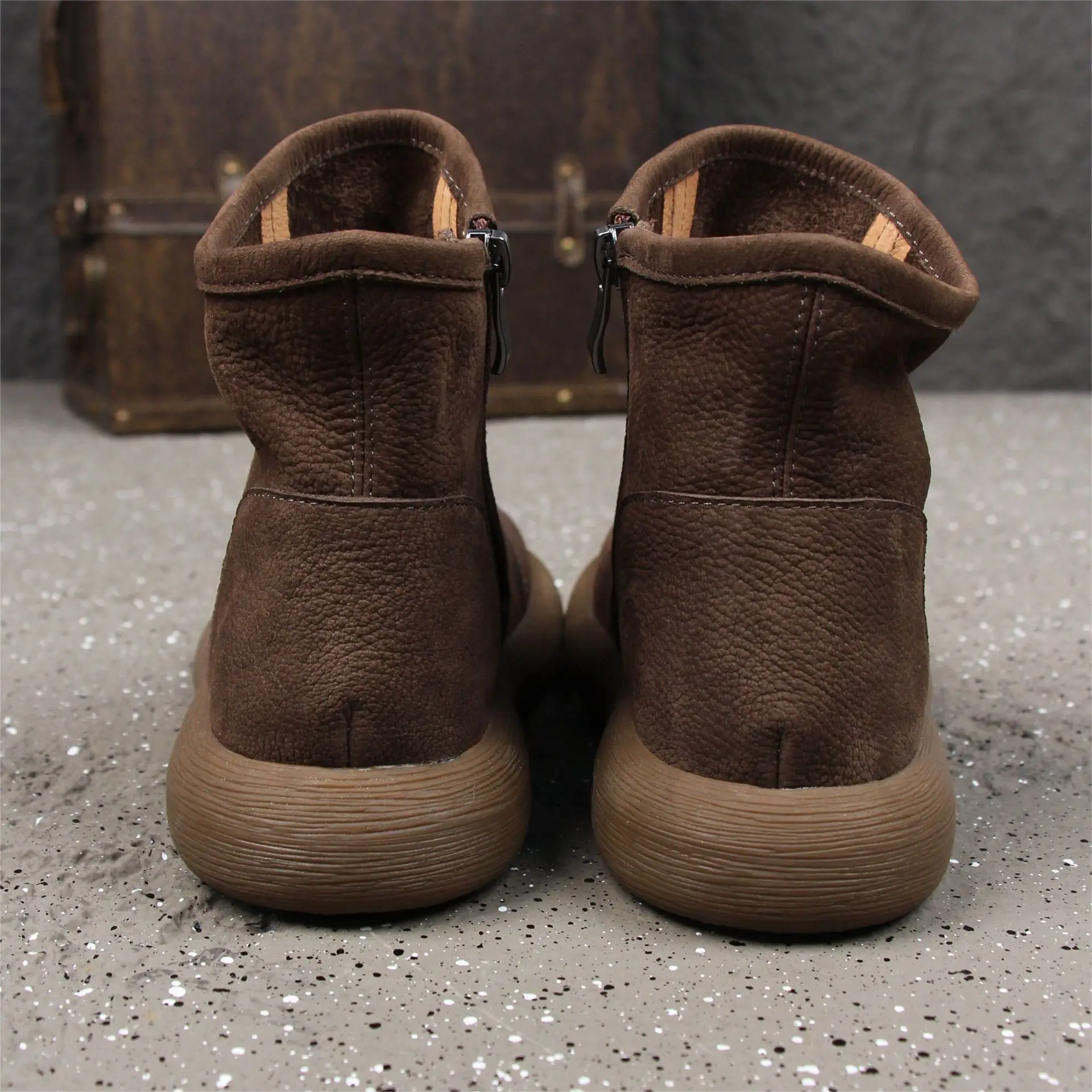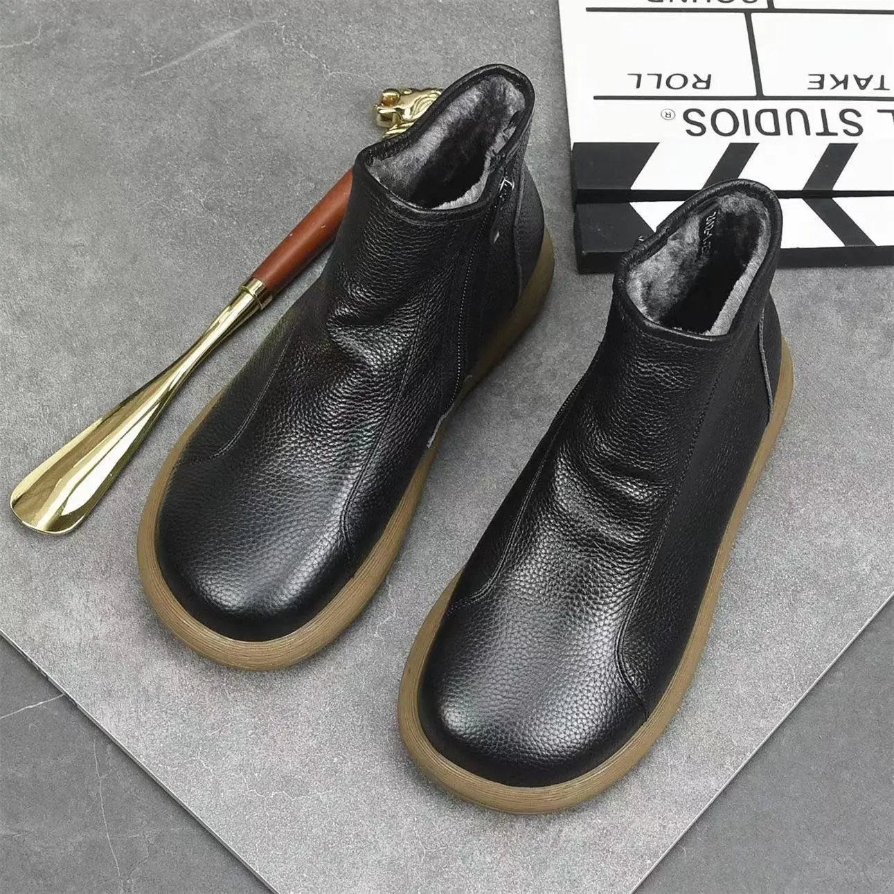 Handgefertigte Damen Stiefeletten aus echtem Leder – Warme Retro Ankle Boots mit Rundspitze & Reißverschluss (Größe 35–45)