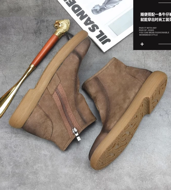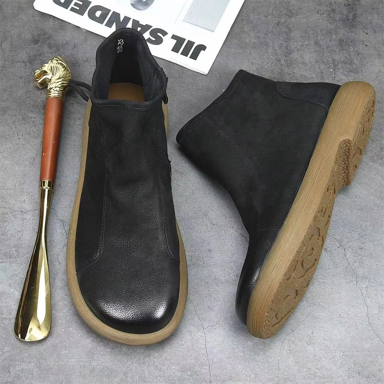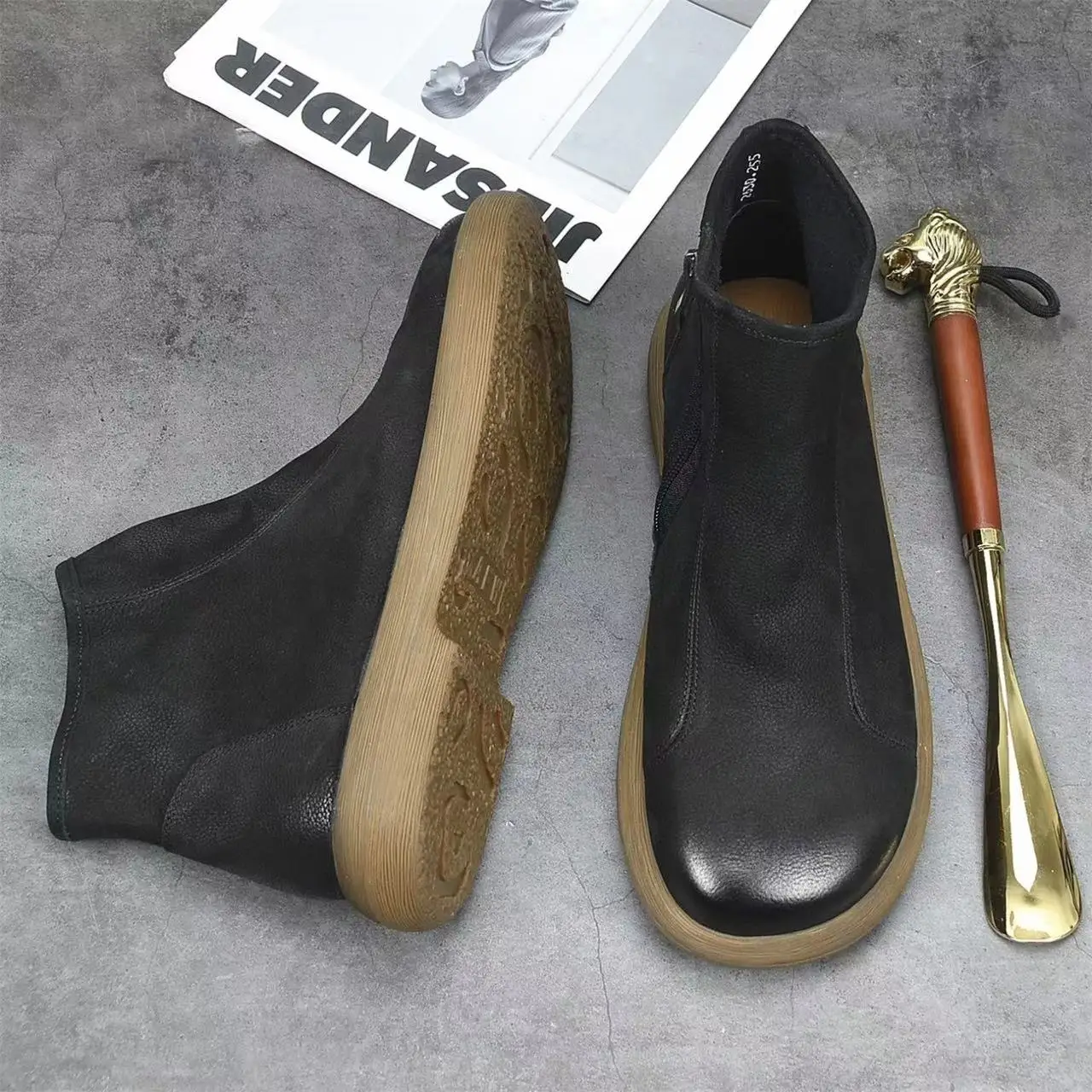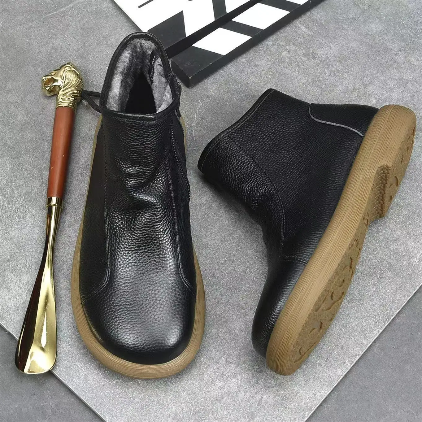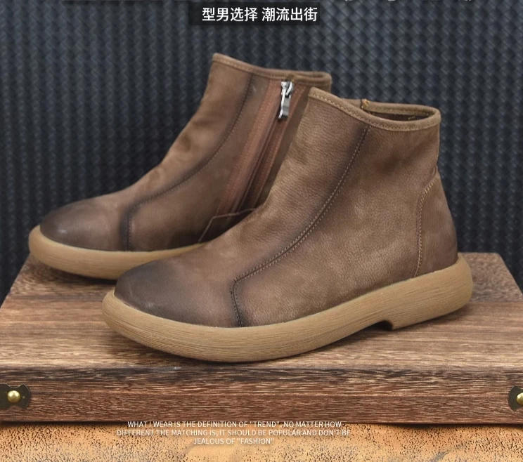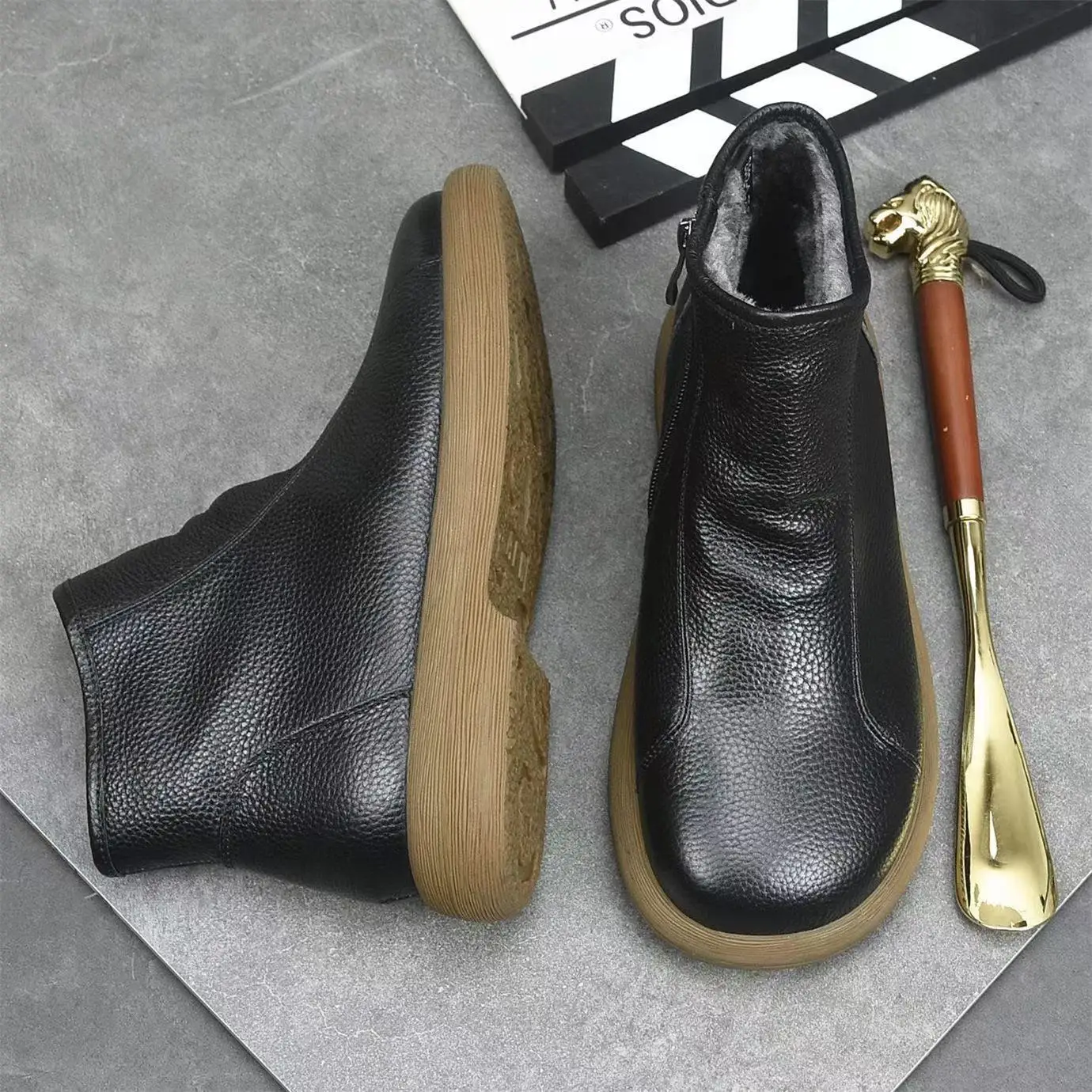 Handgefertigte Damen Stiefeletten aus echtem Leder – Warme Retro Ankle Boots mit Rundspitze & Reißverschluss (Größe 35–45)