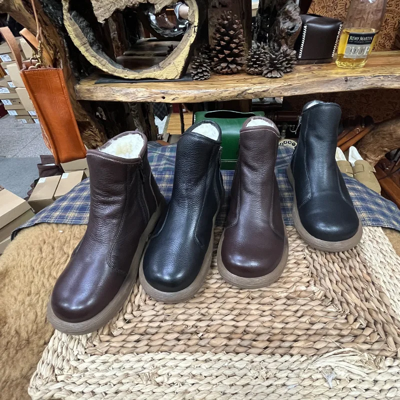 Estas prendas hechas a mano para mujeres están diseñadas para calidad, comodidad y estilo retro auténtico. Gefertigt aus echtem Rindsleder, sind sie die ideale Wahl für Frauen, die natürliche Materialien und langlebige Verarbeitung schätzen. Das schlichte, zeitlose Design macht diese kurzen Lederboots zu einem vielseitigen Begleiter für Alltag, Freizeit und entspannte Herbstoder Frühlingstage.