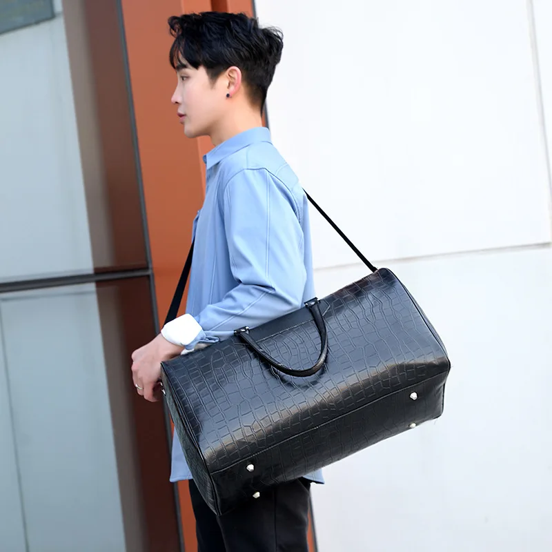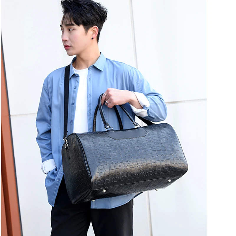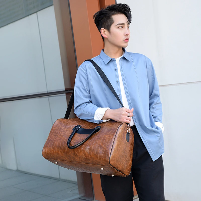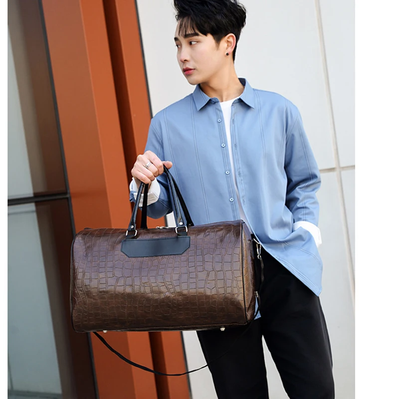 Bolsa de gimnasio para hombre de cuero PU con Python-Muster – Bolsa de fitness, bolsa de viaje y bolsa de lona para deportes, negocios y actividad física