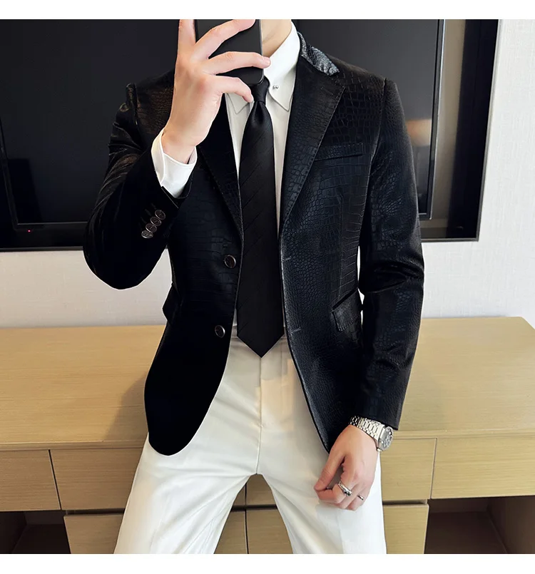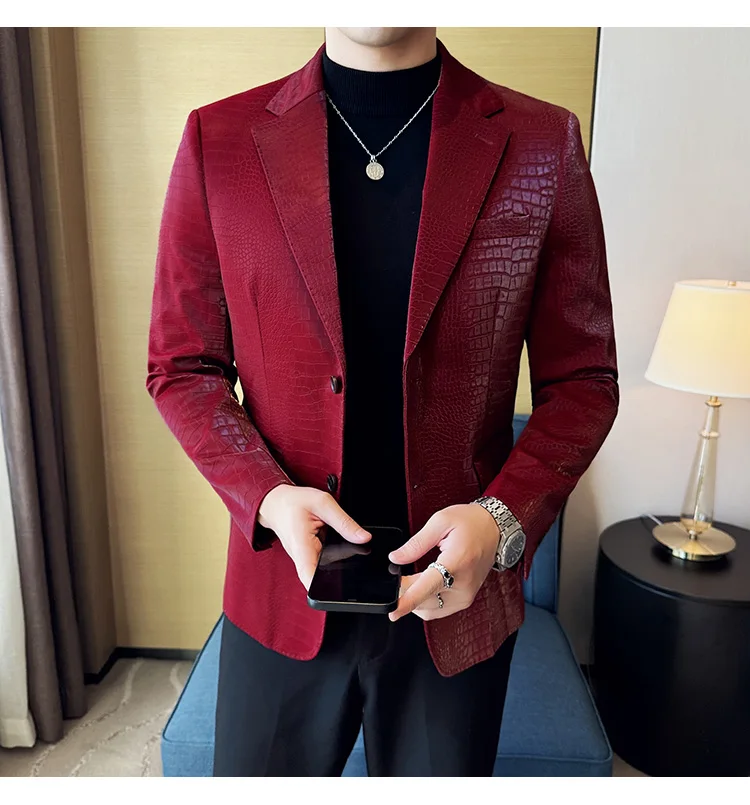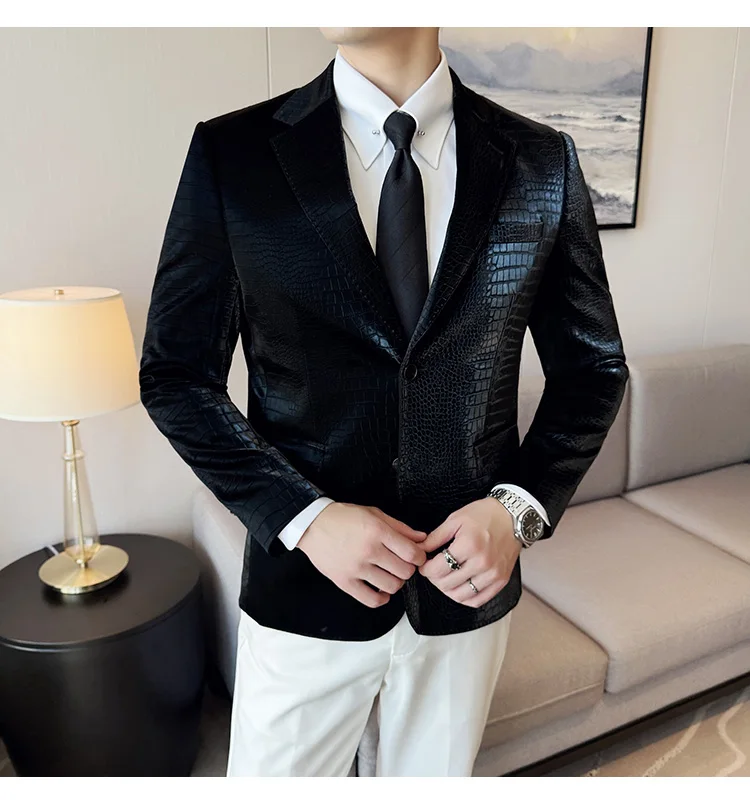 Este elegante blazer de cuero para hombres con ropa de abrigo está diseñado para estilo, personalidad propia y elegancia del tiempo. Entwickelt für Männer, die bei besonderen Anlässen wie Hochzeiten, Events oder im Business-Casual-Umfeld einen markanten Eindruck Hinterlassen möchten, verbindet diese Jacke klassische Schneiderkunst mit modernem Design. Die feine Tierprägung verleiht dem Look eine luxuriöse Note, ohne überladen zu wirken.