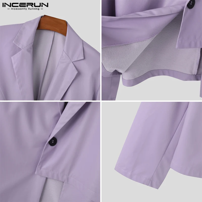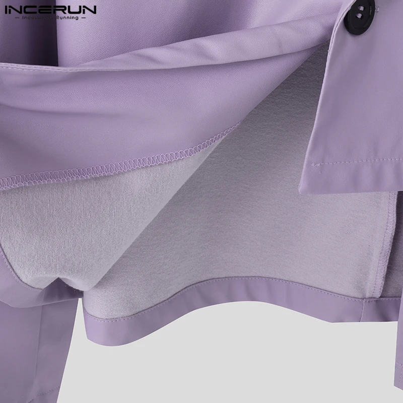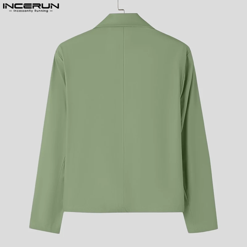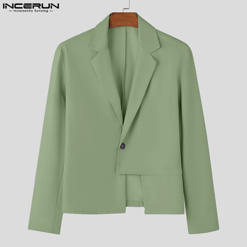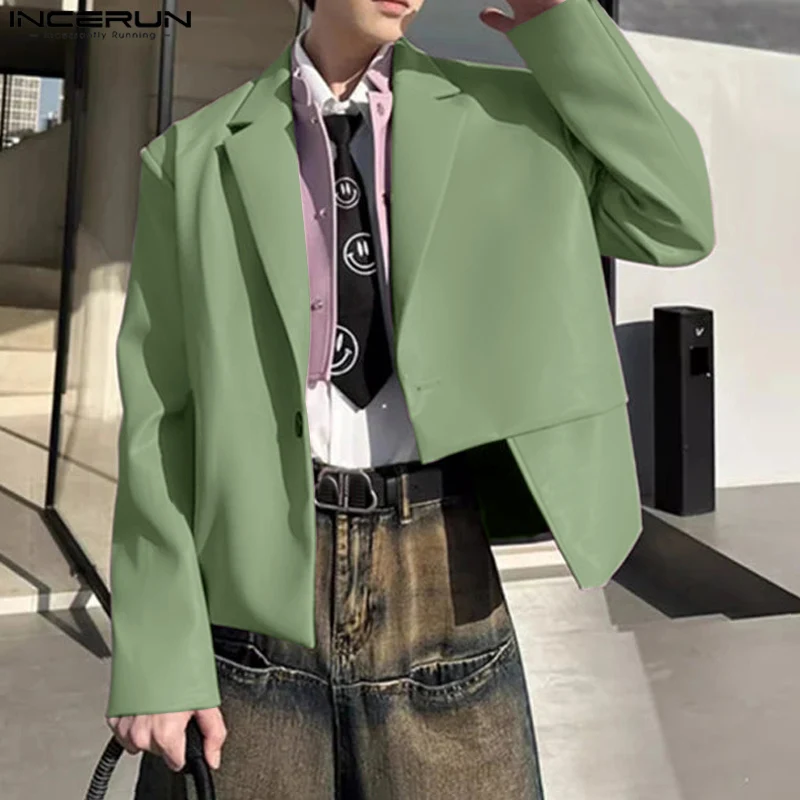 La chaqueta de cuero de PU para hombre INCERUN 2025 está diseñada para una elegancia moderna y un estilo claro y urbano, estilo coreano. Mit seinem außergewöhnlichen Design und dem leicht unregelmäßigen Saum hebt sich dieser Blazer bewusst von klassischen Modellen ab. Er ist die perfekte Wahl für Männer, die im Büro, im Alltag oder bei besonderen Anlässen modisch und selbstbewusst auftreten möchten.