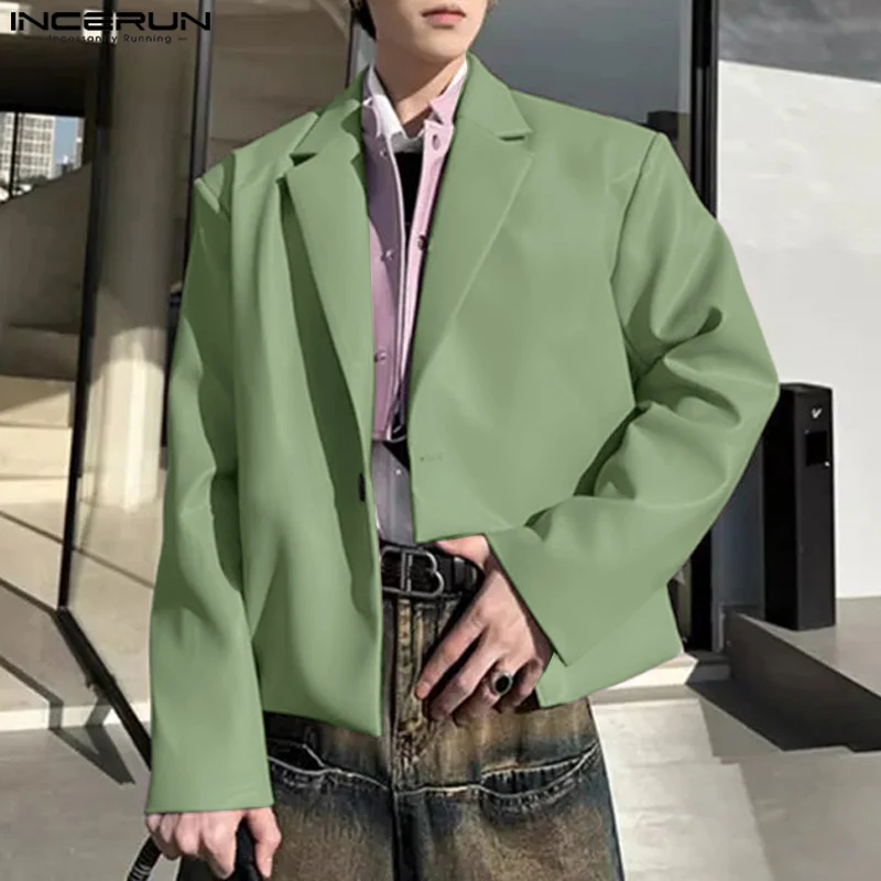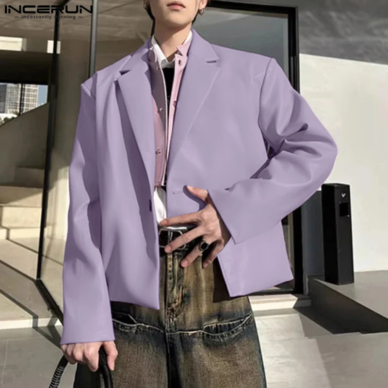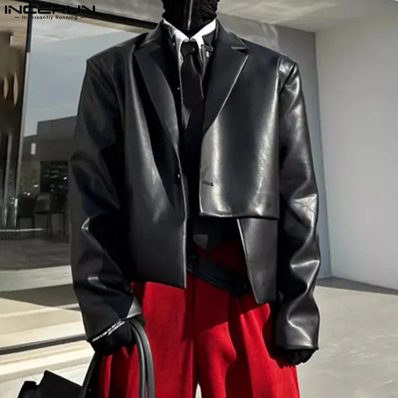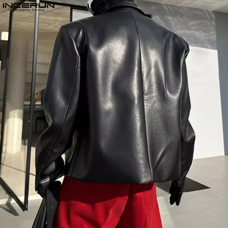 INCERUN Blazer de cuero PU para hombre estilo coreano
