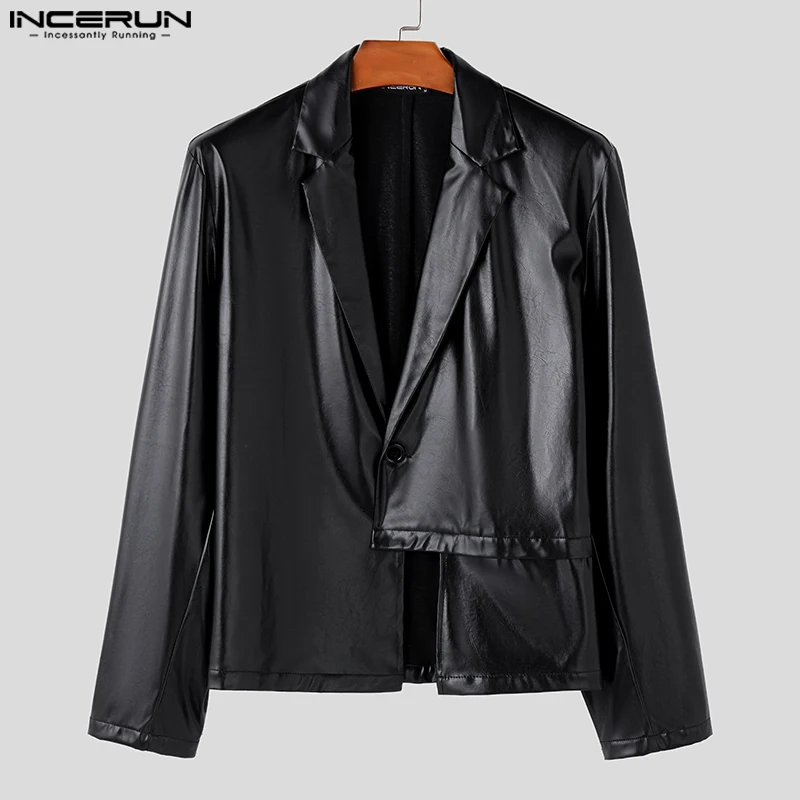 INCERUN Herren PU-Leder Blazer 2025 – Estilo coreano Sakko mit asymmetrischem Saum, elegante blazer informal y de oficina en S-5XL