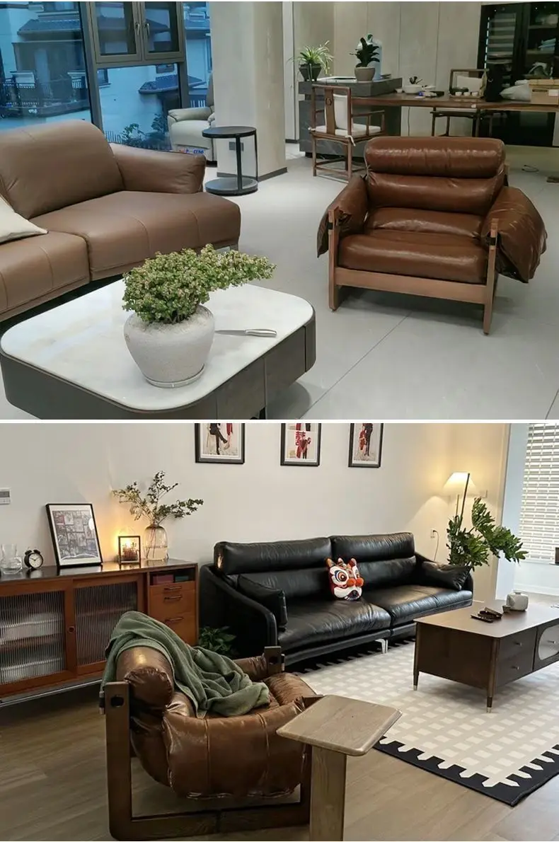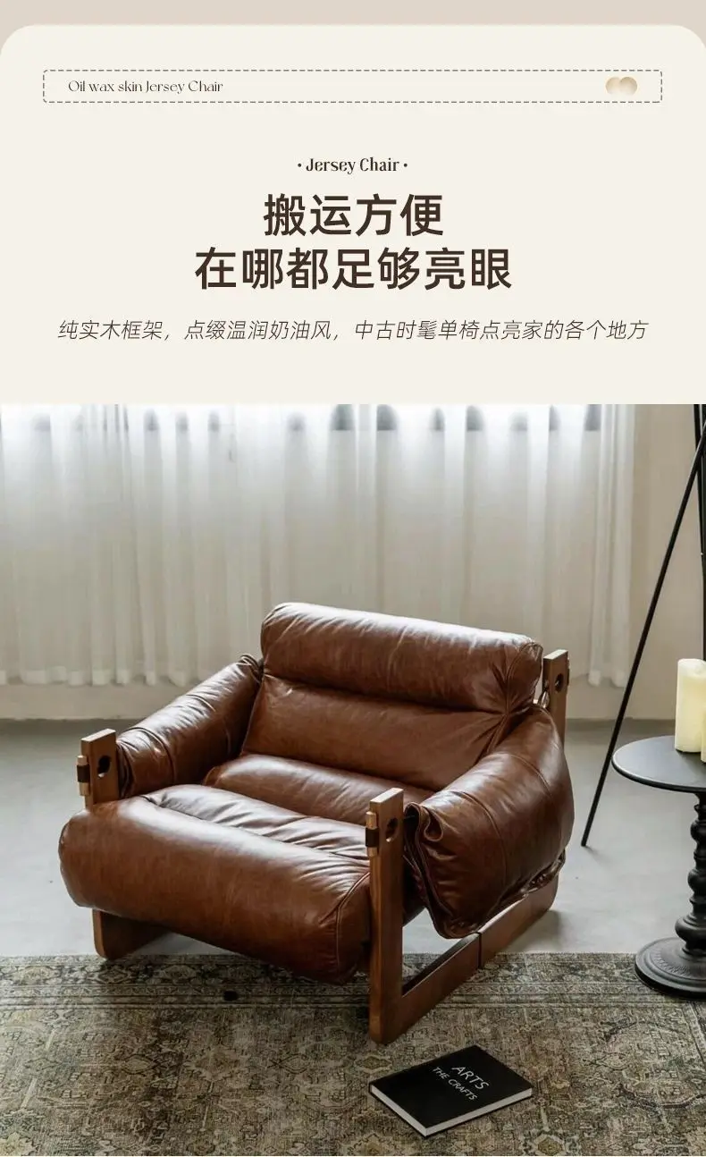 Italiano Retro Lazy Sofa Chair aus Oil-Wax-Leder – Sillón de cuero de diseño para mujeres, sillón individual más moderno en estilo vintage