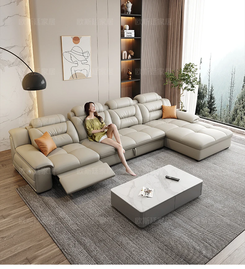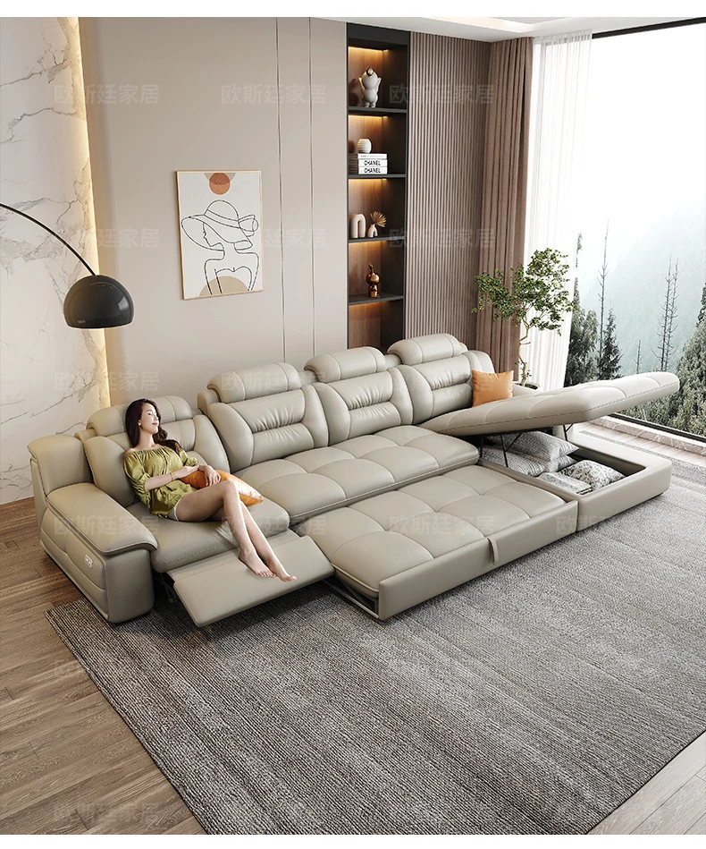 Sofá de cuero italiano de lujo con función de relajación – Forma de L Wohnlandschaft aus Rindsleder, mit Schlaffunktion und Stauraum