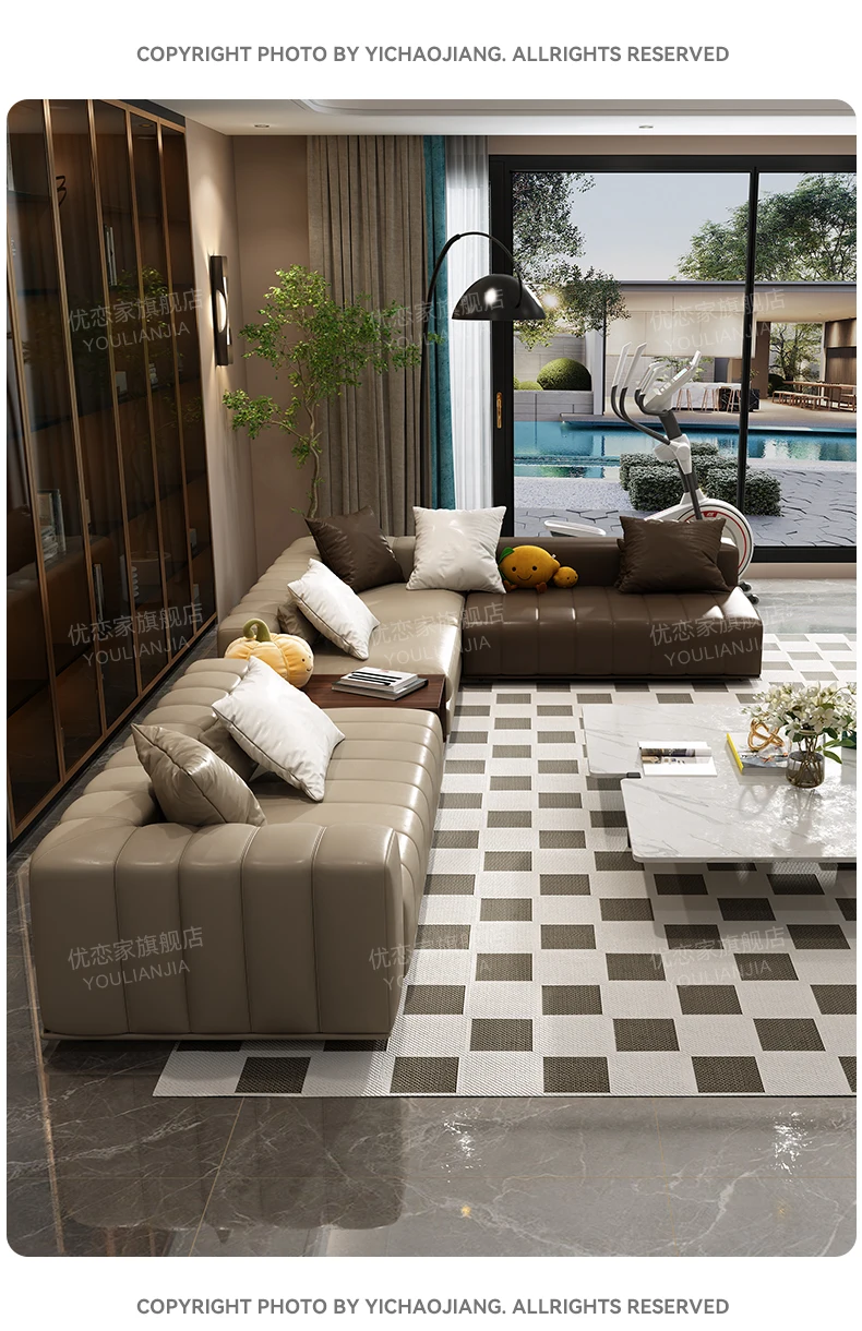 Luxus Lounge Sofa aus Echtleder im nordischen Stil – Kompaktes Designer-Ecksofa mit High-Rebound-Polsterung für modernes Wohnen