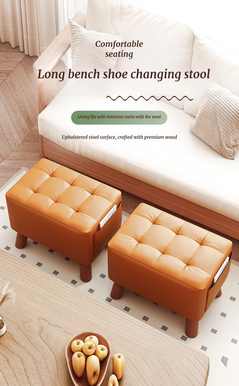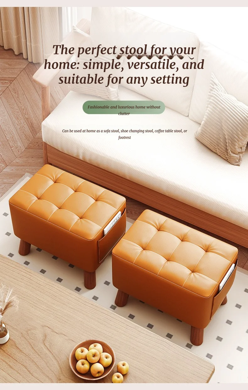Estos pequeños zapatos de cuero para el hogar se combinan con un diseño minimalista y elegante. Ob als Sofa-Begleiter, Couchtischhocker, Fußablage oder zusätzliche Sitzgelegenheit – este moderno Wohnhocker fügt sich harmonisch in zeitgemäße Einrichtungen ein und verleiht Ihrem Zuhause eine dezente Note von Light-Luxury-Eleganz.