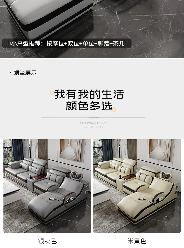 Minimalistisches Luxus Leder Ecksofa mit Massagefunktion – Sofá de diseño moderno en formato L para estilo mujer
