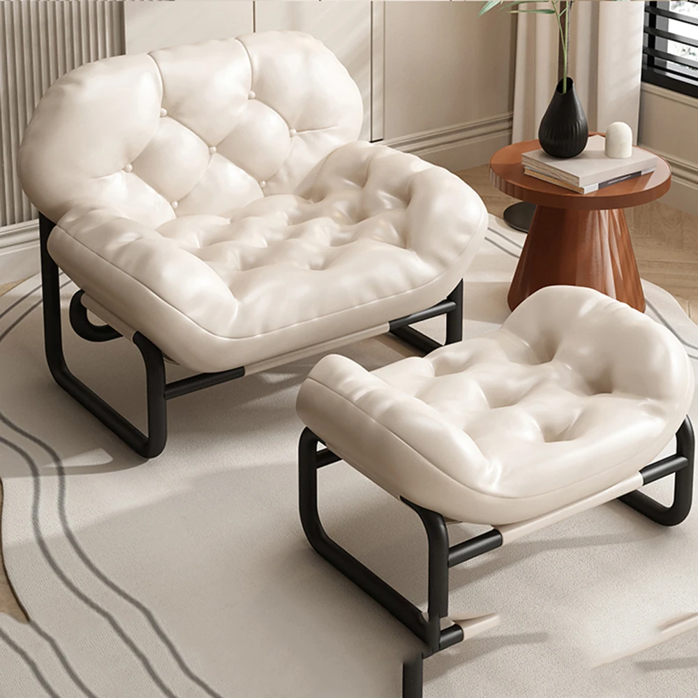 Moderner Leder-Relaxsessel mit Armlehnen & Fußhocker – Sofá individual minimalista en color blanco para meditación, balcón y meditación