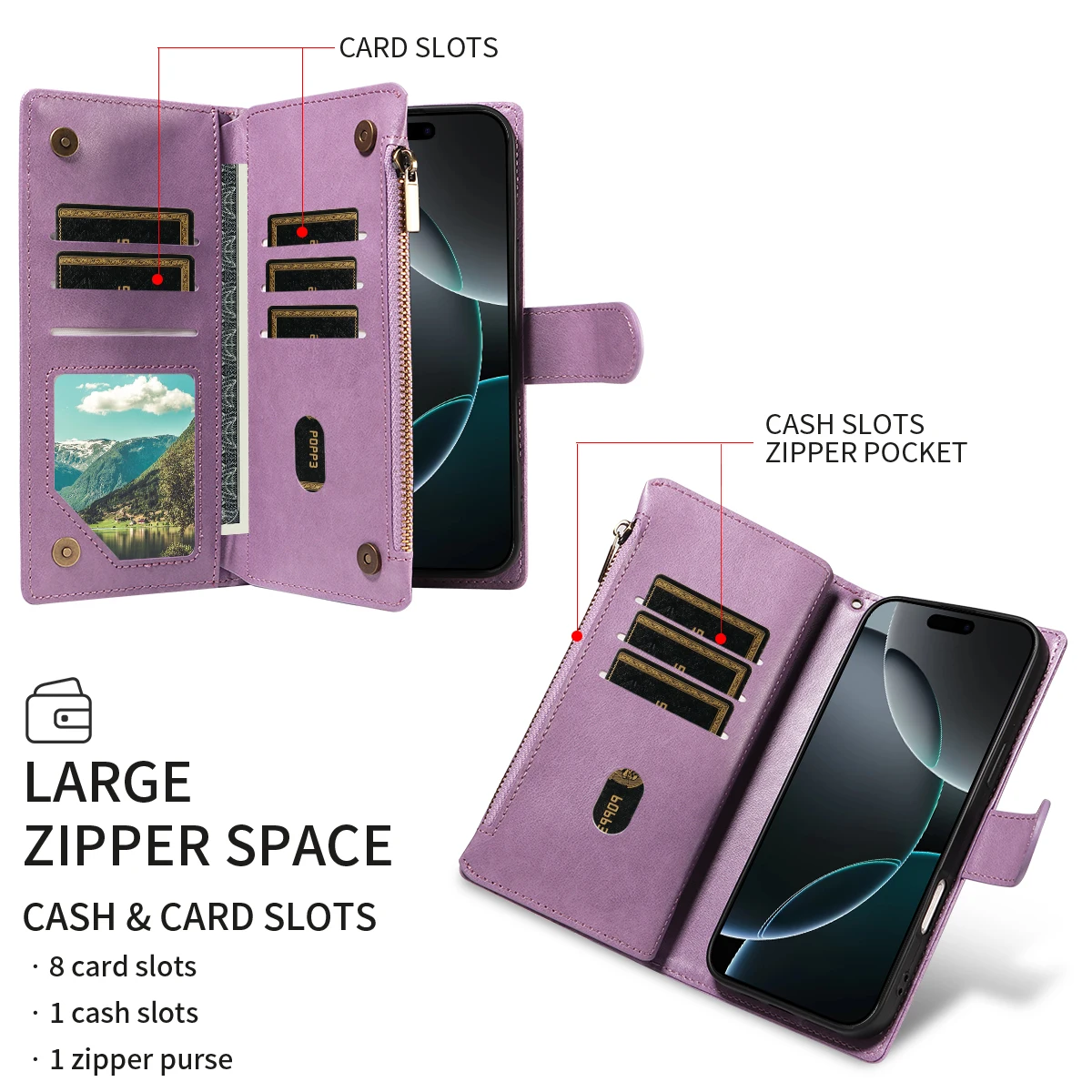 Das integrierte Wallet-Design mit Reißverschluss bietet Platz für Karten, Bargeld oder kleine Alltagsgegenstände. Zusätzliche Kartenslots ermöglichen es, Ausweis, Bankkarte oder Führerschein immer griffbereit zu haben. Así que ersetzt diese iPhone Wallet Hülle auf Wunsch Ihre Geldbörse – praktisch und stilvoll zugleich.