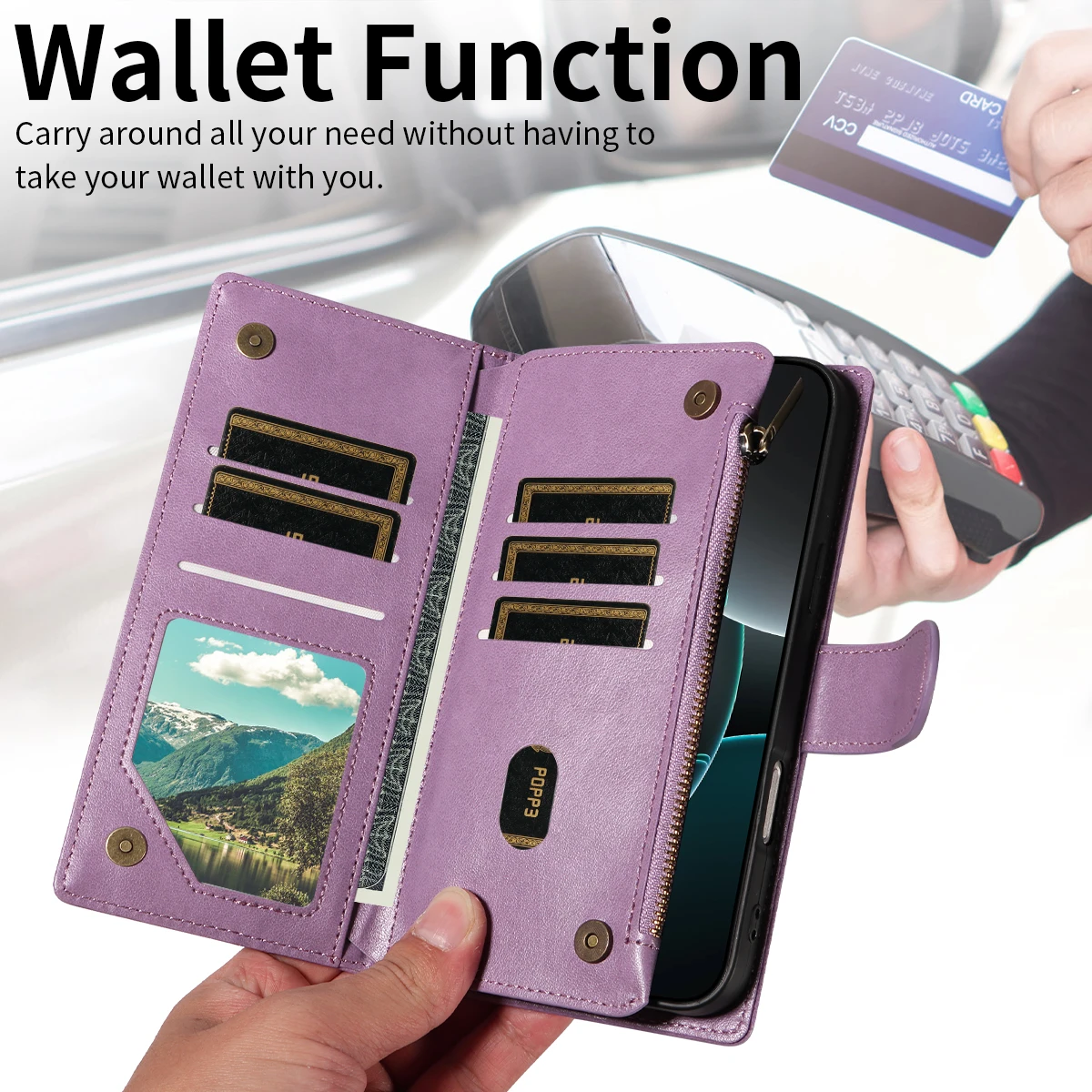Esta cartera multifunción con tapa, práctica y práctica con piel sintética, es el lugar ideal para todos, ya que su iPhone no está protegido, además de una organización práctica. Passend para iPhone 11, 12, 13, 14, 15, 16 y 16e , incluye este elegante diseño de carcasa alta con funciones duraderas como tarjeta, billetera bancaria y soporte práctico . Perfecto para todas las etiquetas, viajes y negocios.