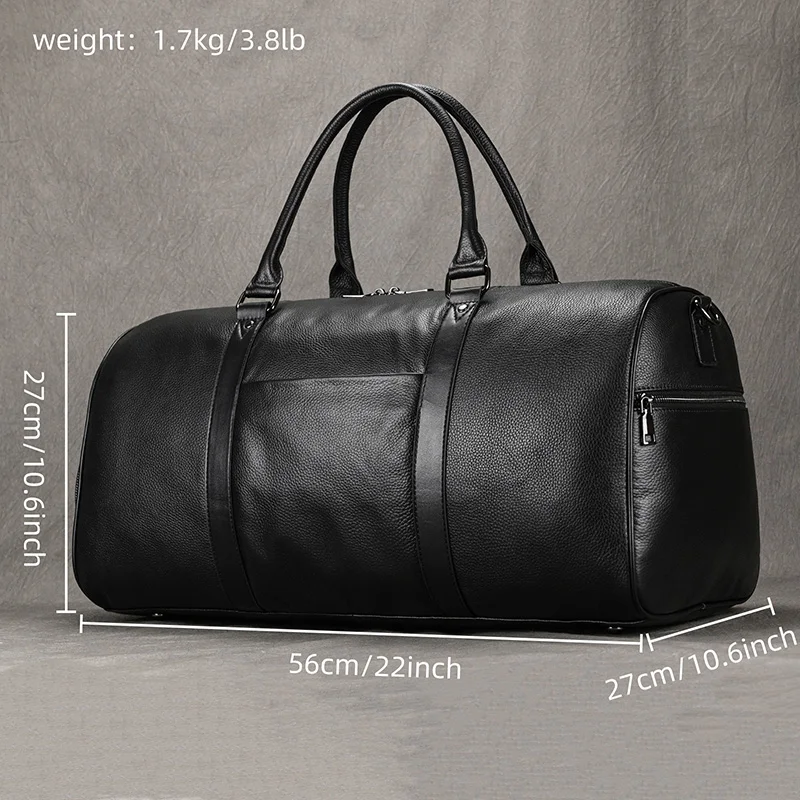 Mit einer Größe von ca. 50 × 18 × 28 cm. Bietet this Leder Duffle Bag viel Stauraum für Kleidung, Schuhe, Technik und Reiseaccessoires. Es perfecto como bolso de mano , bolso de fin de semana o bolso de viaje clásico. Der zuverlässige Reißverschluss schützt den Inhalt sicher und ermöglicht einen schnellen Zugriff. Mit einem Gewicht von ca. 1,5 kg bleibt die Tasche angenehm leicht und gut transportierbar.