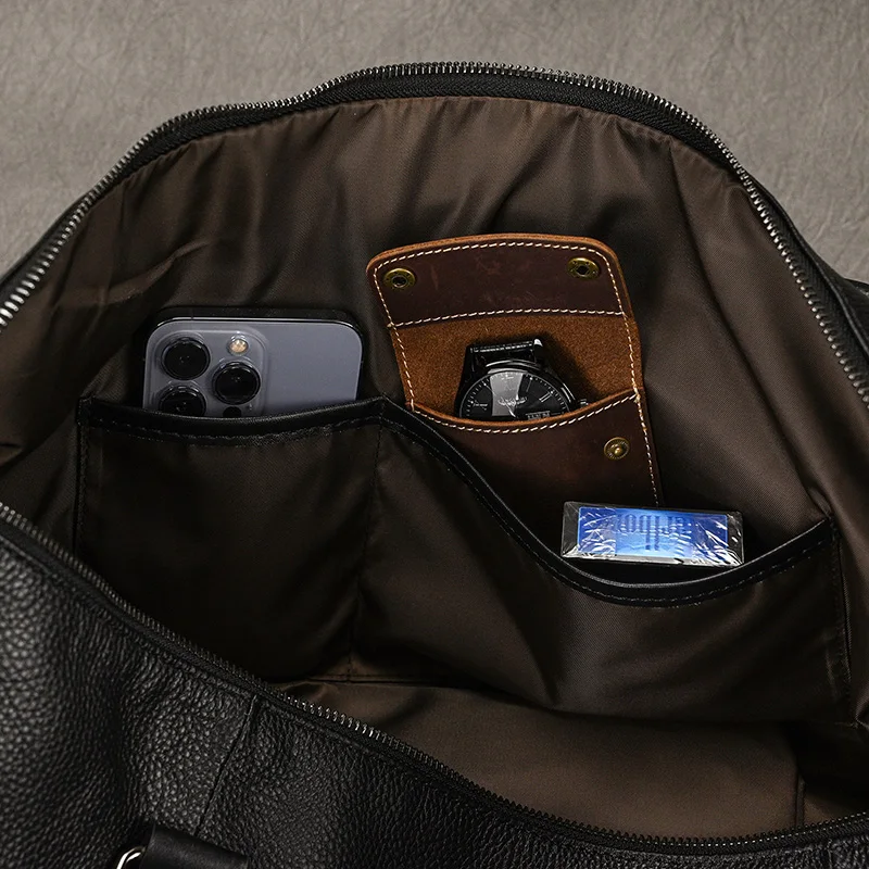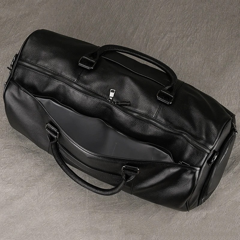 Esta bolsa de cuero negra es una todo terreno. Ob für Kurzreisen, Geschäftsreisen, Sport oder den täglichen Einsatz – sie passt sich flexibel Ihrem Lebensstil an. El estilo casual elegante es ideal para hombres y mujeres, con una función funcional y un estilo elegante.