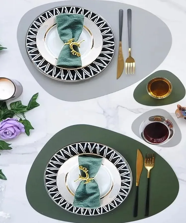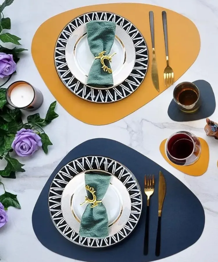 Orange Tischset & Untersetzer Set aus PU-Leder – Öl- & Wasserabweisende Platzsets in unregelmäßiger Form für Küche, Esstisch & Café