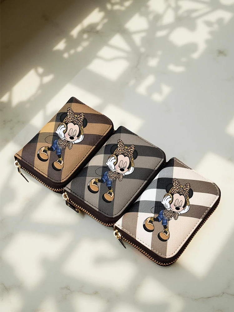 Potdemiel Damen Geldbörse aus PU-Leder – Kurze Wallet mit Reißverschluss, Minnie Karomuster & Leoparden-Design, Kartenfächer in 3 Farben