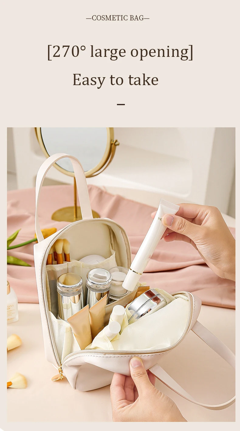 PU Kosmetiktasche mit Griff – Wasserdichte Make-up & Kulturbeutel, multifuncional, leicht & kompakt