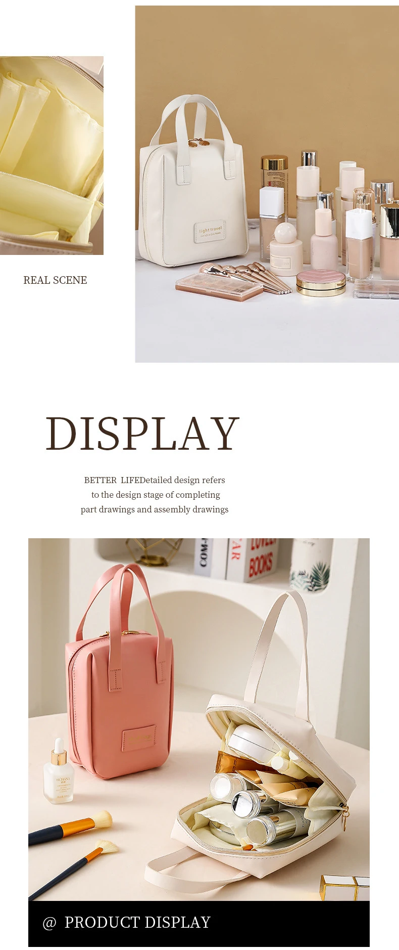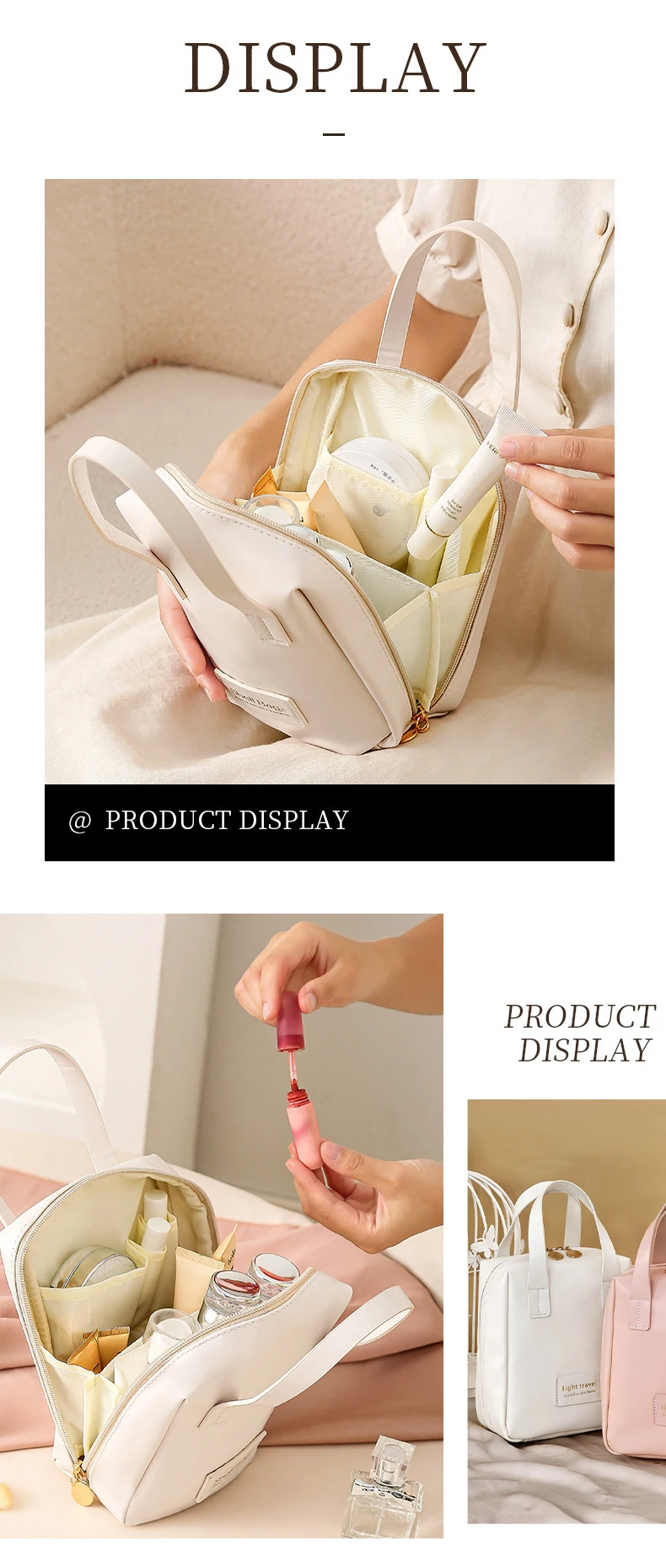 La PU Kosmetiktasche mit Tragegriff es la solución ideal para todos los ordenamientos, estilos y funciones en una tarea combinada. Ob zu Hause, im Fitnessstudio oder auf Reisen: estas multifuncionales bolsas de maquillaje y artículos de tocador se encuentran en la plaza para cosmética, productos de cosmética y artículos de tocador y un diseño moderno y elegante.
