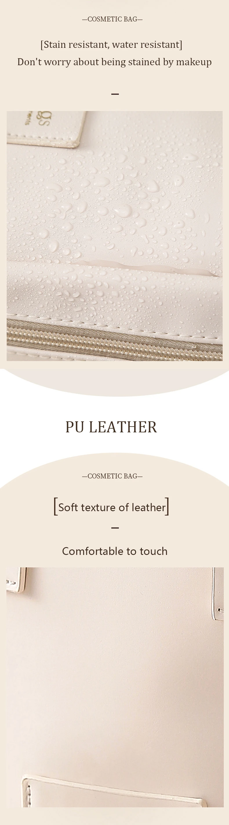 Gefertigt aus hochwertigem PU , ist die Kosmetiktasche besonders wasserabweisend, langlebig und leicht zu reinigen . Spritzer von Lotion, Make-up oder Wasser sich problemlos abwischen, wodurch der Inhalt zuverlässig geschützt bleibt. Das weiche, formtabile Material sorgt für eine elegante Optik und angenehme Haptik – ideal für den täglichen Gebrauch.