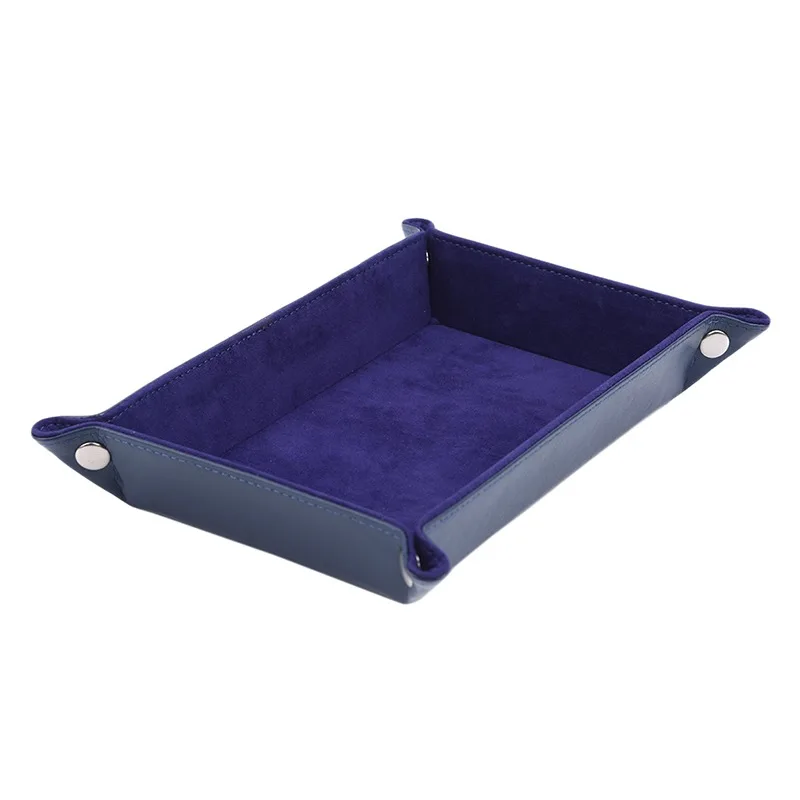 Rechteckige PU Leder Ablageschale mit Samt – Faltbares Dice Tray & Organizer für Schlüssel, Geldbörse, Münzen und Spiele