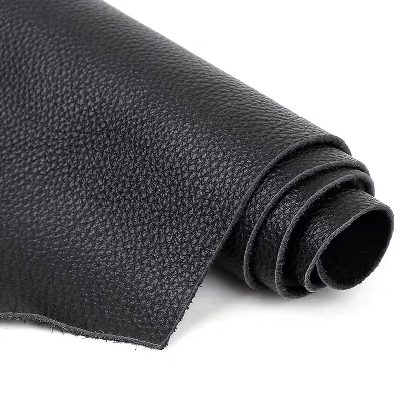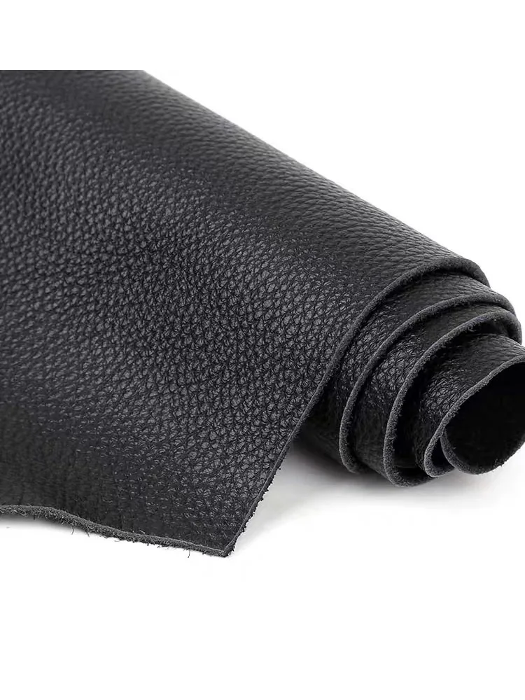 Schwarzes Rindsleder mit Lychee-Prägung – Weiches Echtleder am Stück 1,5 mm für Taschen, Sofa & DIY Lederarbeiten