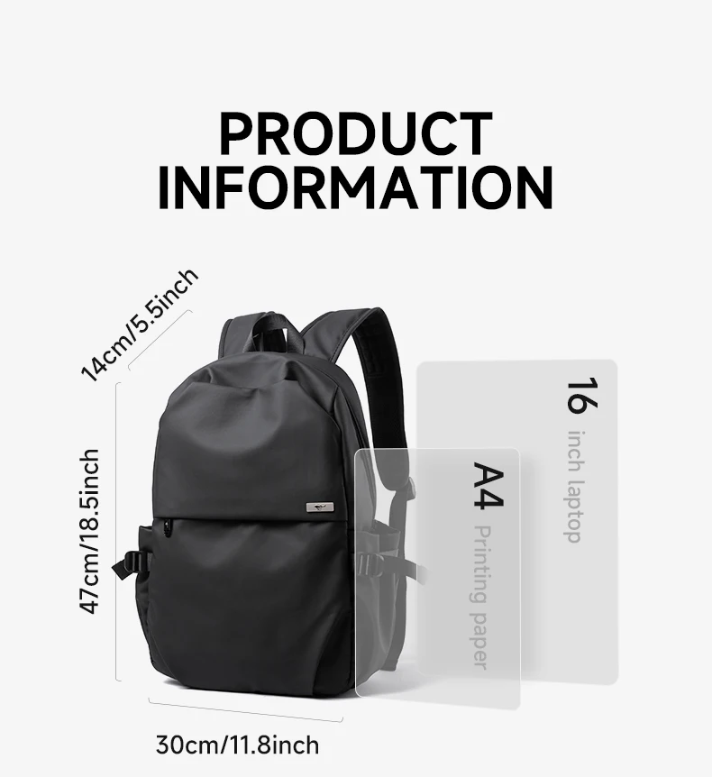 Tamaño: 30 × 14 × 47 cm – compacto, aber geräumig genug für Alltag und Business
